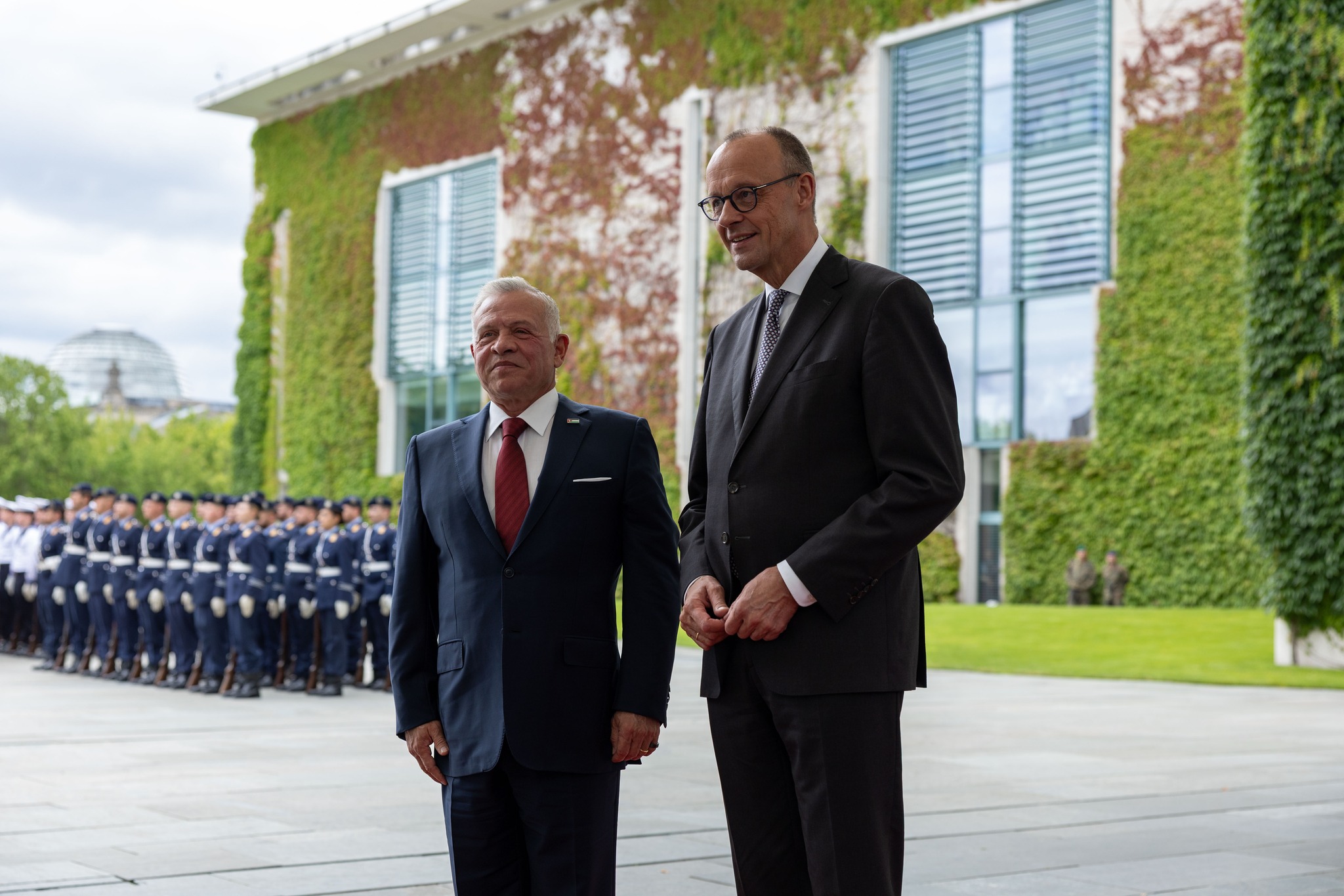 وأشاد جلالته بالعلاقات الأردنية الألمانية، وقال إننا “ملتزمون بتوسيع التعاون الثنائي في شتى القطاعات، إضافة إلى التعاون مع الاتحاد الأوروبي”.