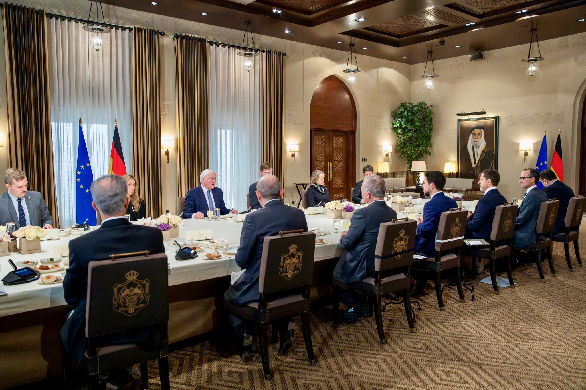 وحضر المباحثات نائب رئيس الوزراء ووزير الخارجية وشؤون المغتربين أيمن الصفدي، ومدير مكتب جلالة الملك، المهندس علاء البطاينة، والسفير الأردني في ألمانيا فايز خوري.