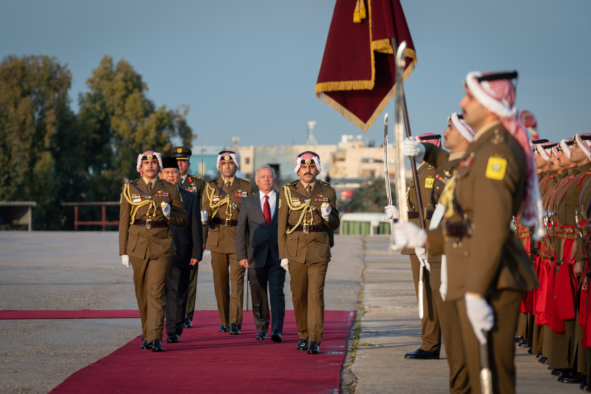 المستقل – استقبل جلالة الملك عبدالله الثاني، اليوم الأحد، الرئيس الإندونيسي برابوو سوبيانتو، لدى وصوله مطار ماركا في زيارة رسمية للأردن تستمر يومين.