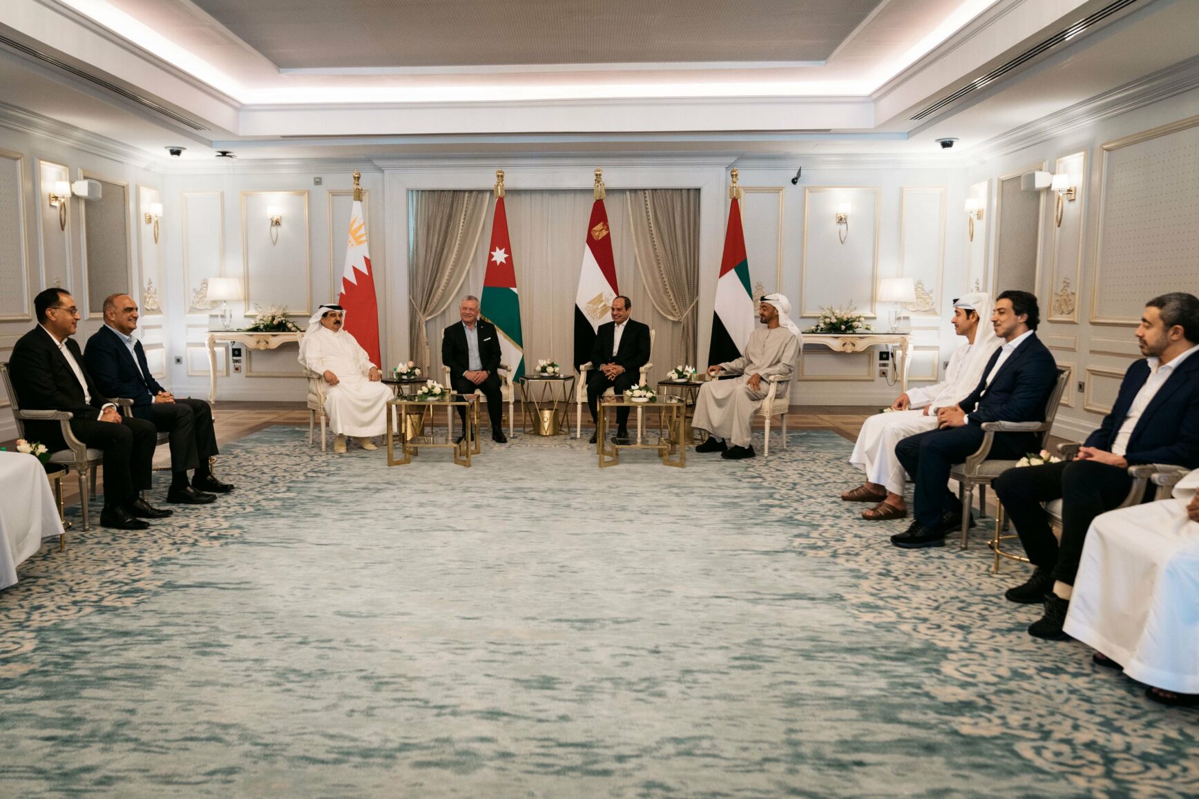 وضم اللقاء، الذي عُقد بدعوة من الرئيس المصري عبدالفتاح السيسي، جلالة الملك حمد بن عيسى آل خليفة ملك مملكة البحرين، وسمو الشيخ محمد بن زايد آل نهيان رئيس دولة الإمارات العربية المتحدة.