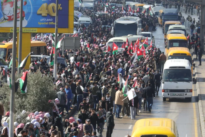 واحتشد المواطنون على طول الطريق من مطار ماركا العسكري وصولا إلى قصر رغدان العامر حاملين صور جلالته والأعلام الأردنية ولافتات التأييد لمواقف جلالته في رفض التهجير القسري للفلسطينيين من أرضهم في الضفة الغربية وقطاع غزة، وتعبيرا عن دعمهم لهذه المواقف المشرفة.