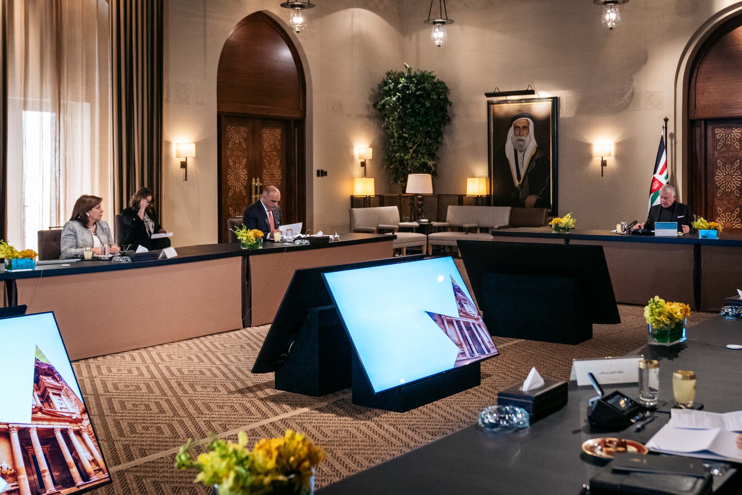 وحضر الاجتماع مدير مكتب جلالة الملك، الدكتور جعفر حسان، ونائب رئيس الوزراء للشؤون الاقتصادية ووزير الدولة لتحديث القطاع العام ناصر الشريدة، ووزيرة التخطيط والتعاون الدولي زينة طوقان.