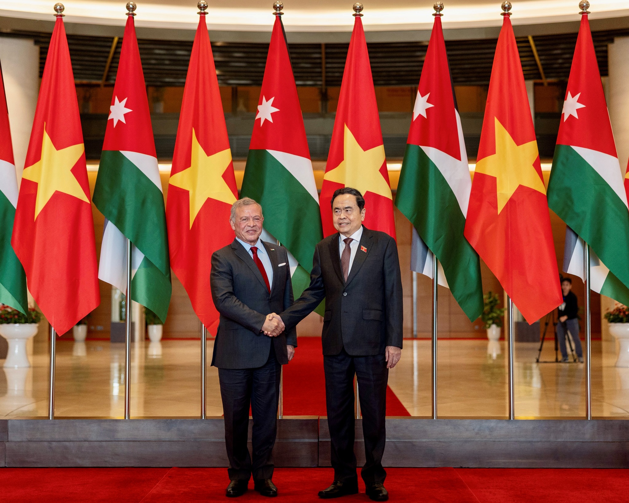المستقل – التقى جلالة الملك عبدﷲ الثاني في هانوي، اليوم الأربعاء، رئيس الجمعية الوطنية (البرلمان) في فيتنام تران ثانه مان.