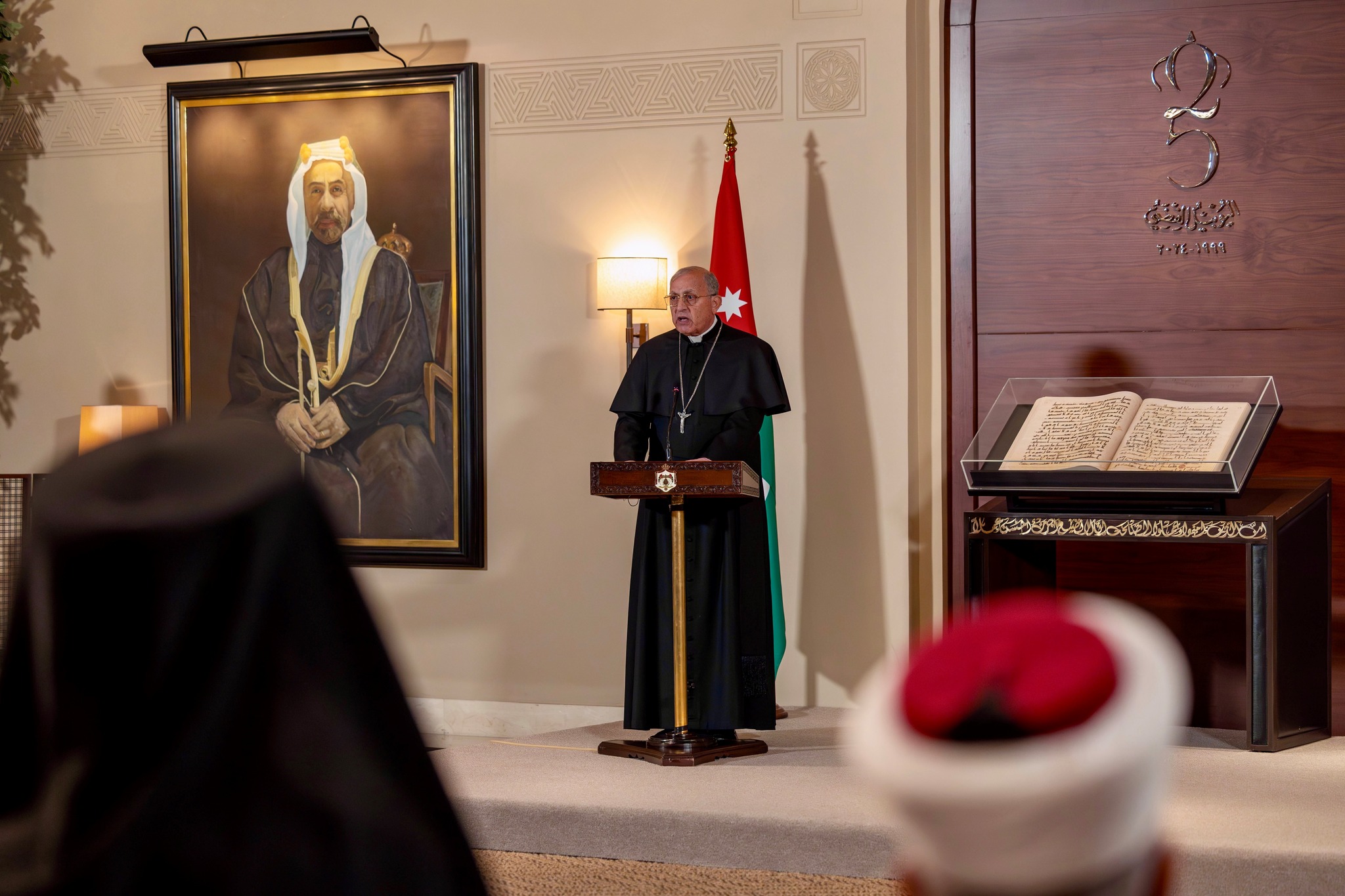 وفي كلمة لغبطة الكاردينال بيير باتيستا بيتسابالا، بطريرك المدينة المقدسة للاتين، ألقاها نيافة الأب جهاد شويحات، النائب البطريركي للاتين في الأردن، أكد فيها أن الدور التاريخي للهاشميين في المدينة المقدسة وصوت جلالة الملك في المحافل الدولية وجهوده المستمرة محط تقدير وشكر وثناء، وأن الحفاظ على الأماكن المقدسة وعلى الوضع القائم التاريخي والقانوني في القدس الشريف رسالة يحملها الهاشميون عبر الأجيال، ويحملها معهم المقدسيون ليعم السلام وتتحقق العدالة.