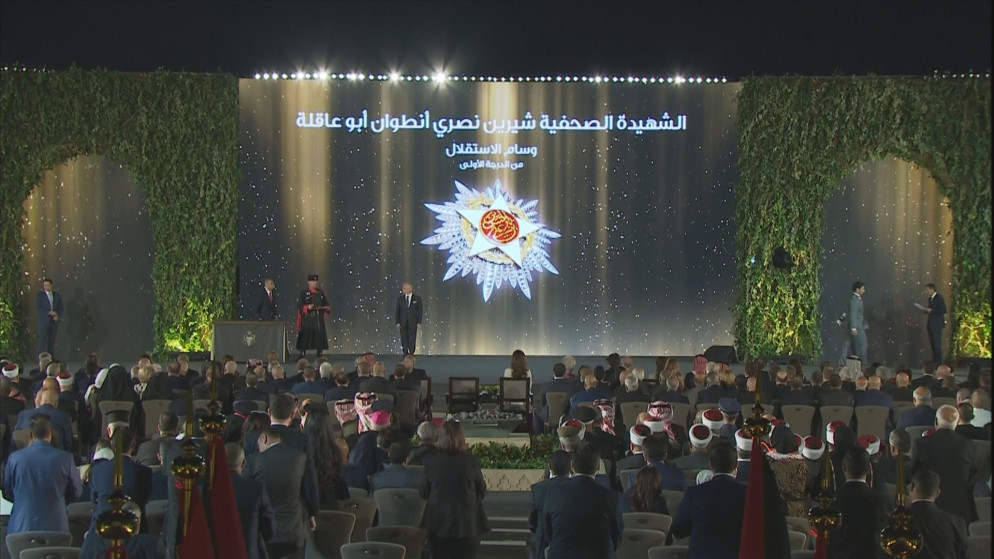 المستقل – أنعم جلالة الملك عبدالله الثاني، الأربعاء، على الشهيدة الصحفية شيرين أبو عاقلة بوسام الاستقلال من الدرجة الأولى، ضمن احتفال وطني بعيد الاستقلال 76 في قصر الحسينية.