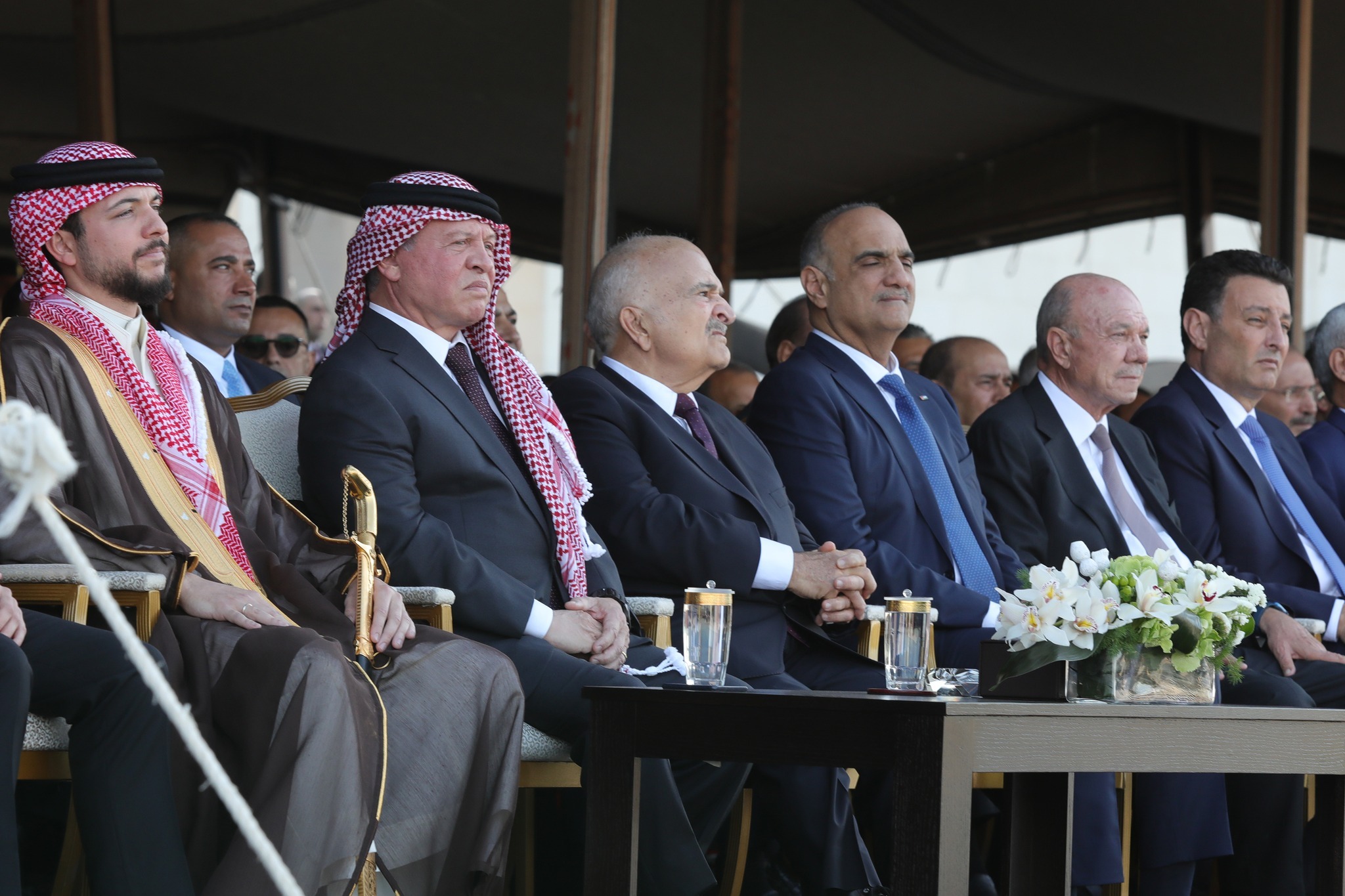 وكان عدد من أصحاب السمو الملكي الأمراء وكبار المسؤولين في الديوان الملكي الهاشمي، في استقبال الآلاف من أبناء المجتمع الأردني من شيوخ ووجهاء عشائر وممثلي فعاليات رسمية وشعبية وحزبية ونقابية وشبابية وإعلامية ومؤسسات مجتمع مدني.