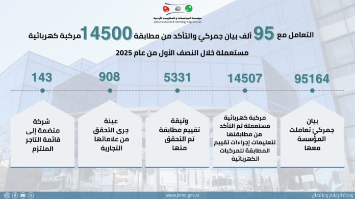 المستقل – تعاملت مؤسسة المواصفات والمقاييس، خلال النصف الأول من العام الحالي، مع 95164 بيانا جمركيا.