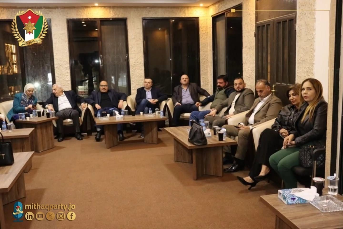 المستقل –  استضاف حزب الميثاق الوطني، مساء الأمس، نخبة من الإعلاميين والصحفيين الأردنيين في أمسية رمضانية نظمتها اللجنة الاعلامية التنفيذية للحزب، بحضور الأمين العام أحمد الهناندة ومساعد الأمين العام للشؤون الاعلامية الدكتور ابراهيم البريزات وعدد من اعضاء المكتب السياسي واعضاء اللجنة الاعلامية التنفيذية ، في أجواء عكست أهمية الشراكة بين الإعلام والعمل الحزبي في دعم خطة التحديث السياسي.