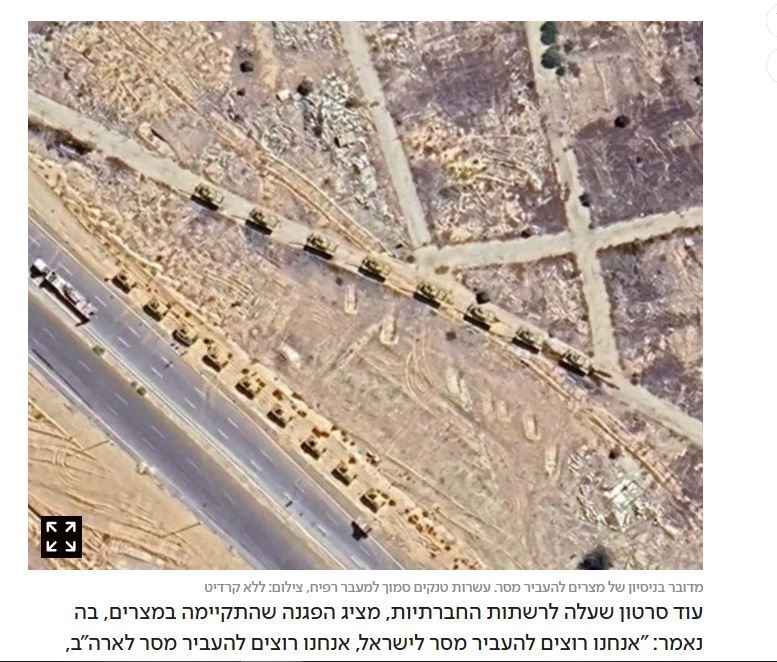 وقالت الصحيفة العبرية إن هذه المقاطع المسربة تعد محاولة مصرية لتوصيل رسالة غير مباشرة لإسرائيل، فعشرات الدبابات قرب معبر رفح، تحمل دلائل كبيرة.