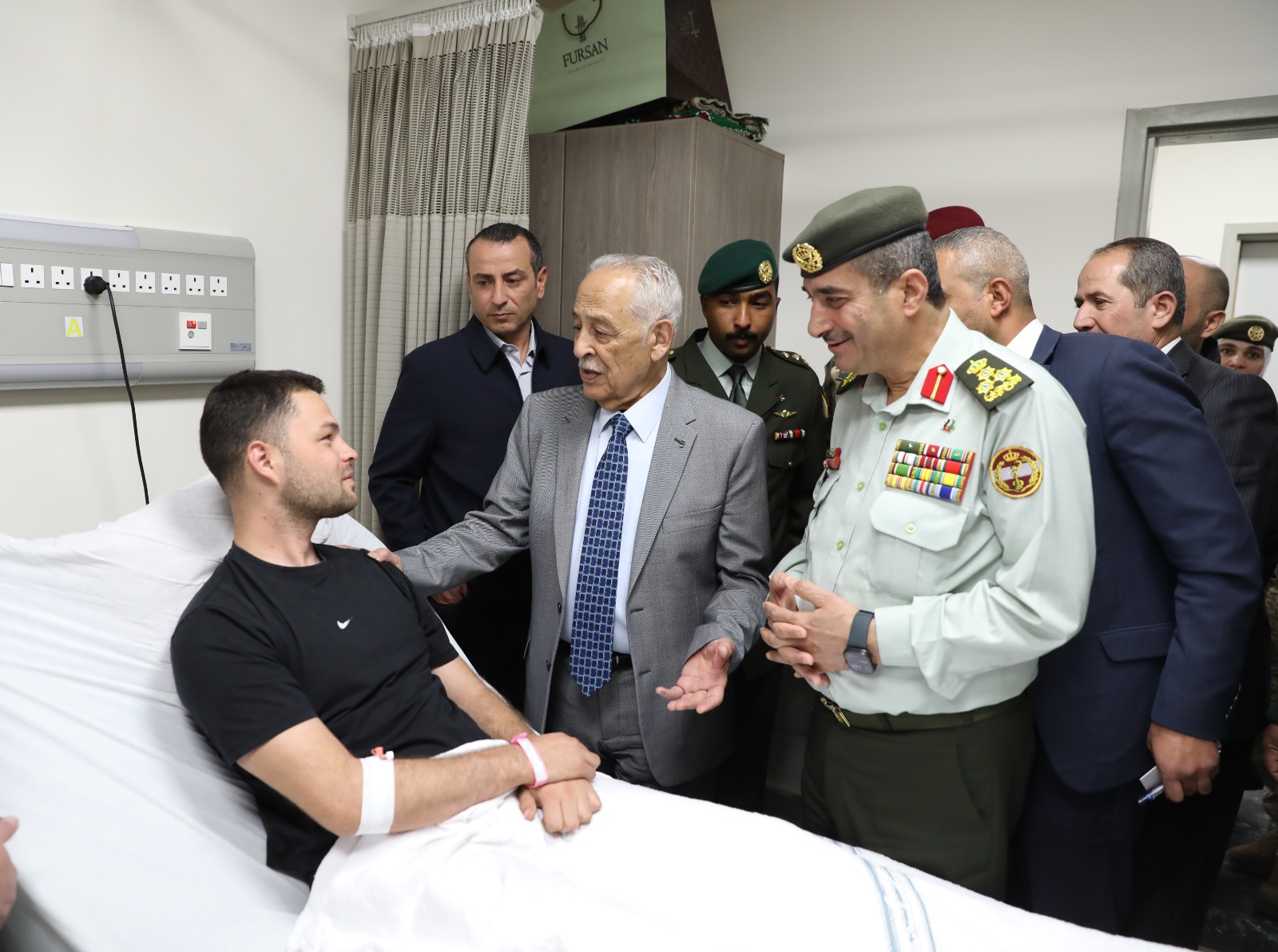 وخلال الزيارة، نقل العيسوي للمصابين تحيات جلالة الملك عبدالله الثاني وسمو الأمير الحسين بن عبدالله الثاني، ولي العهد، واعتزازهما الكبير بما قدّموه من شجاعة وتضحية في أداء واجبهم الوطني، وتمنياتهما لهم بالشفاء العاجل وعودتهم القريبة إلى أهلهم واستئناف أداء واجبهم.