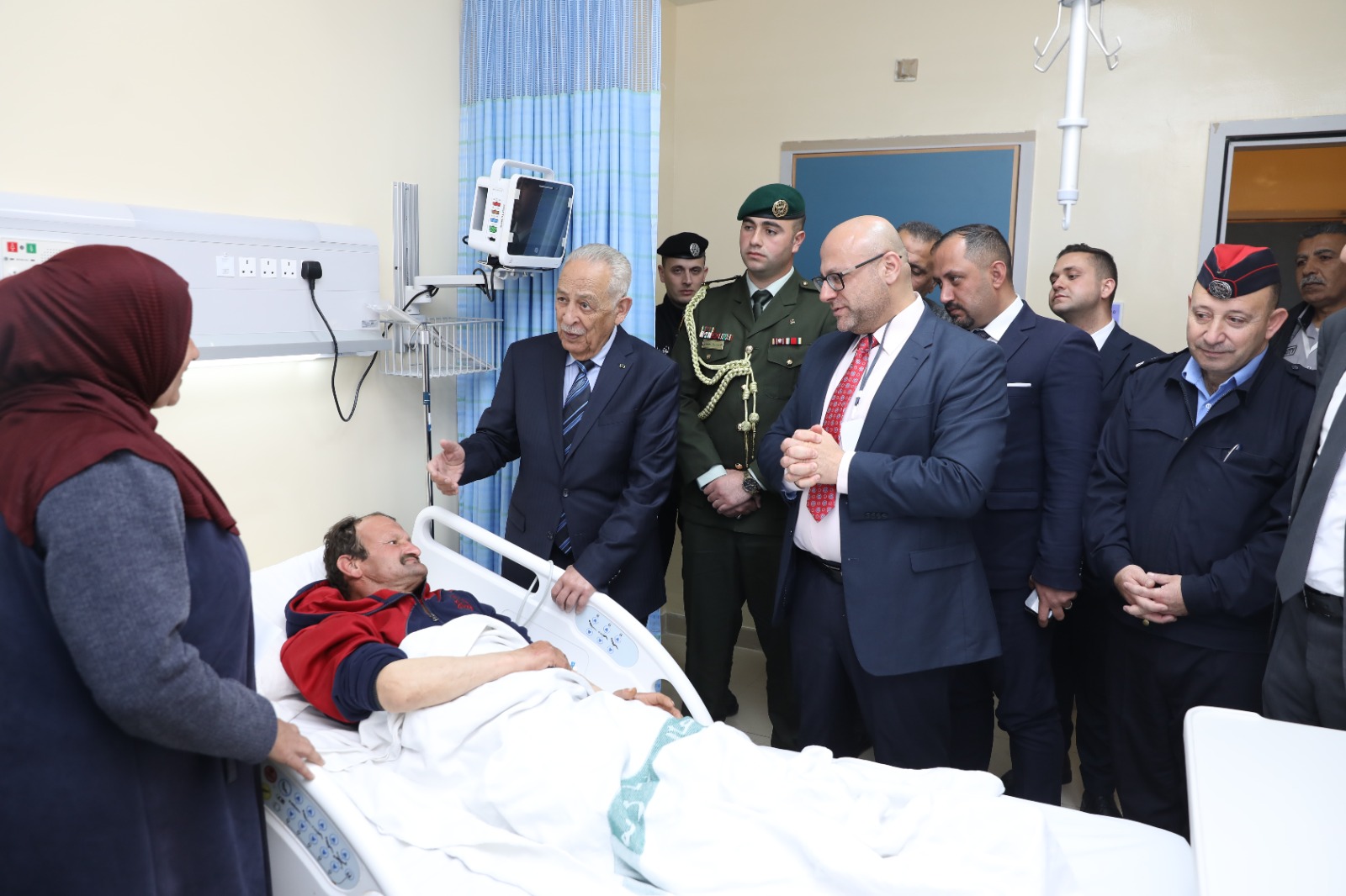 ونقل العيسوي للمصاب تمنيات جلالة الملك وسمو الأمير الحسين بن عبدالله الثاني بالشفاء العاجل، مؤكداً حرص جلالته على متابعة أوضاع المواطنين والاطمئنان على سلامتهم، وتقديم كل أشكال الدعم والمساندة لهم.