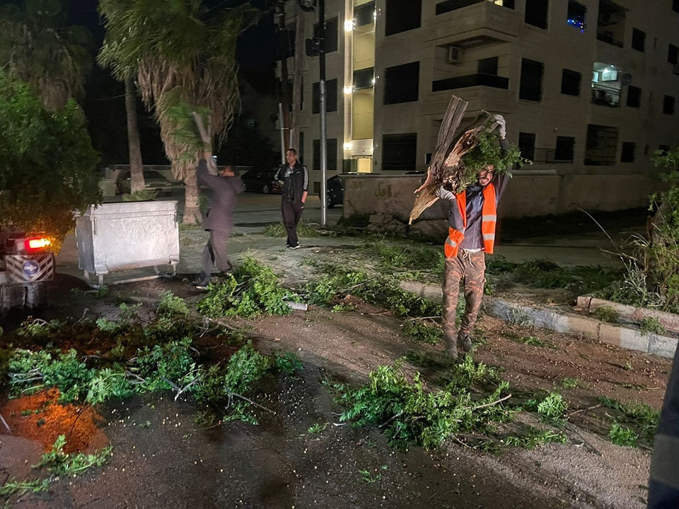 بلدية إربد تتعامل مع حالات سقوط أشجار