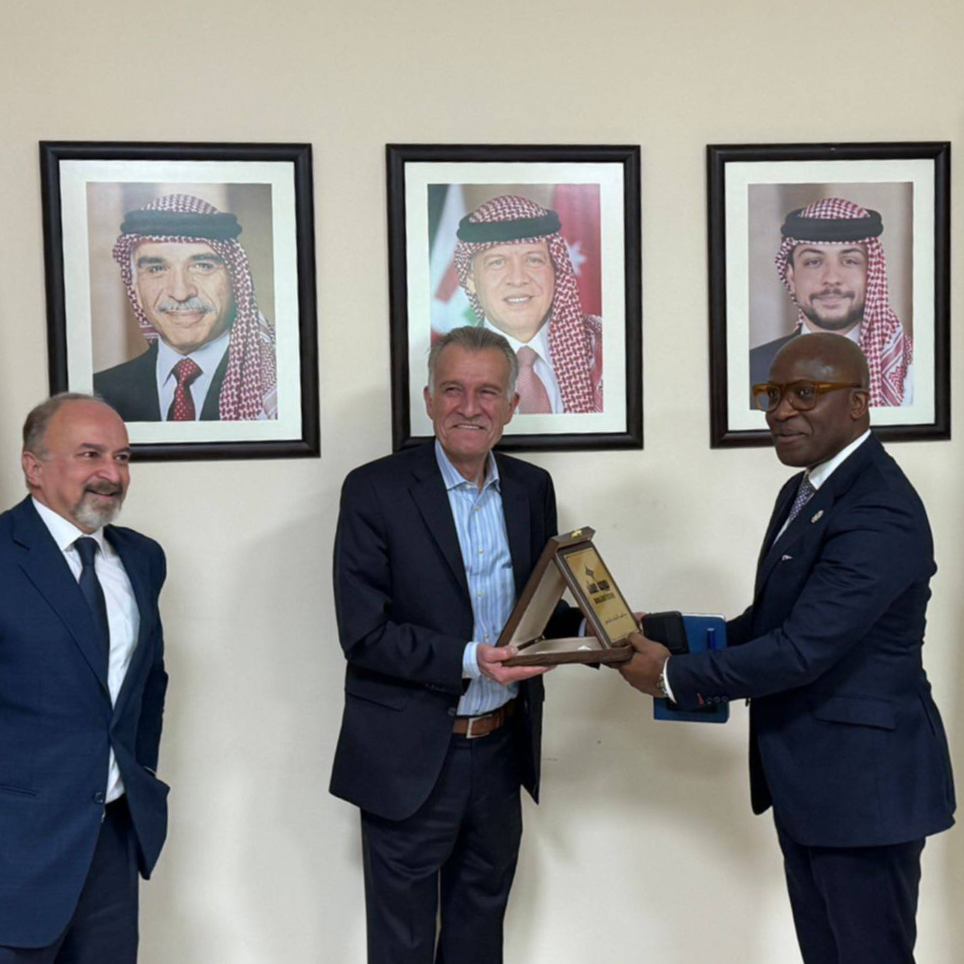 وفي ختام اللقاء، قدّم رئيس مجلس إدارة بورصة عمّان والمدير التنفيذي لمركز إيداع الأوراق المالية دروعاً تذكارية إلى السفير البريطاني ومسؤول الأسواق الأساسية في منطقة الشرق الأوسط وأفريقيا.