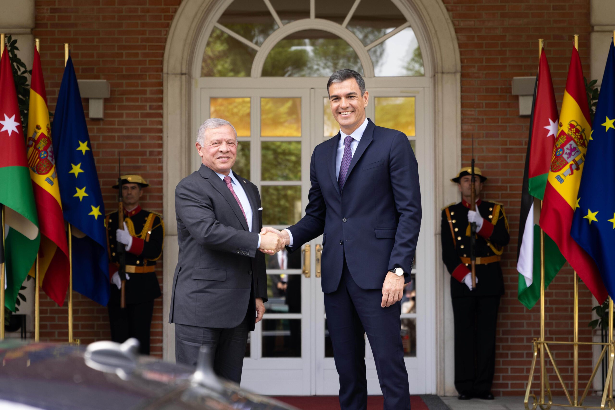 في سياق زيارته الرسمية لإسبانيا، التقى جلالة الملك عبدالله الثاني، ملك المملكة الأردنية الهاشمية، برئيس حكومة إسبانيا بيدرو سانشيز في 19 حزيران 2023 في قصر مونكلوا.