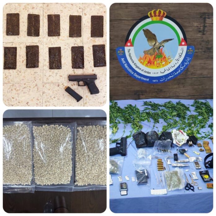 وفي قضايا الاتجار والتهريب، أُلقي القبض في محافظة العقبة على تاجر للمخدرات بعد مقاومته للقوة وضبط بحوزته 10 كفوف حشيش وسلاح ناري، فيما أُلقي القبض شرق العاصمة على مروجين اثنين وبحوزتهما 6 كفوف حشيش، ومروج آخر أيضا شرق العاصمة وبحوزته 4 كفوف حشيش.