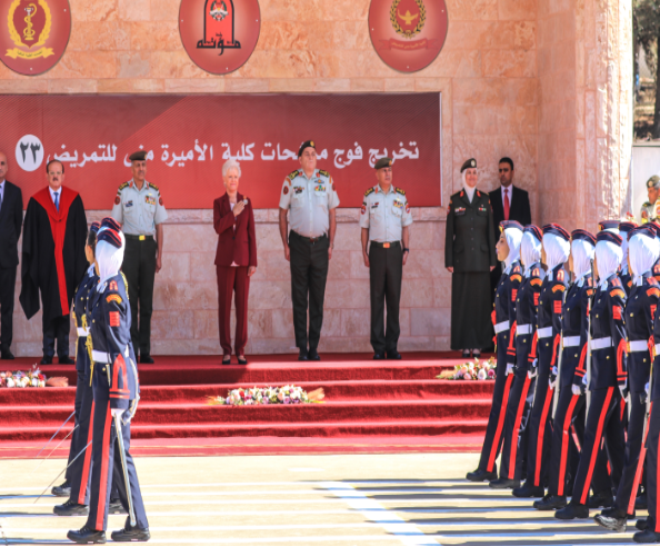 واستكمالاً لمراسم التخريج، وزّع مدير عام الخدمات الطبية الملكية العميد الطبيب يوسف الزريقات الشهادات على الخريجات.