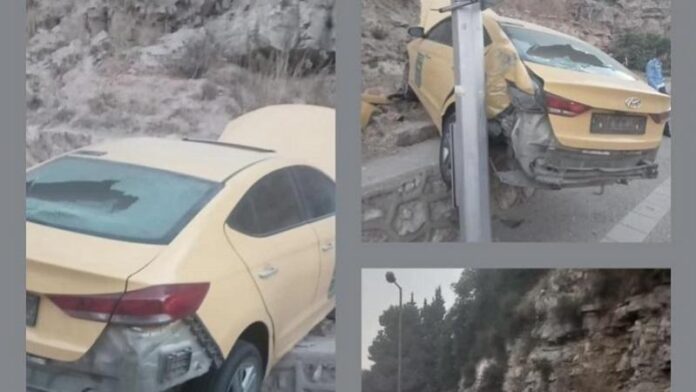 تدهور مركبة عمومية اصطدمت بالصخر وعمود إنارة .. والسير تكشف السبب