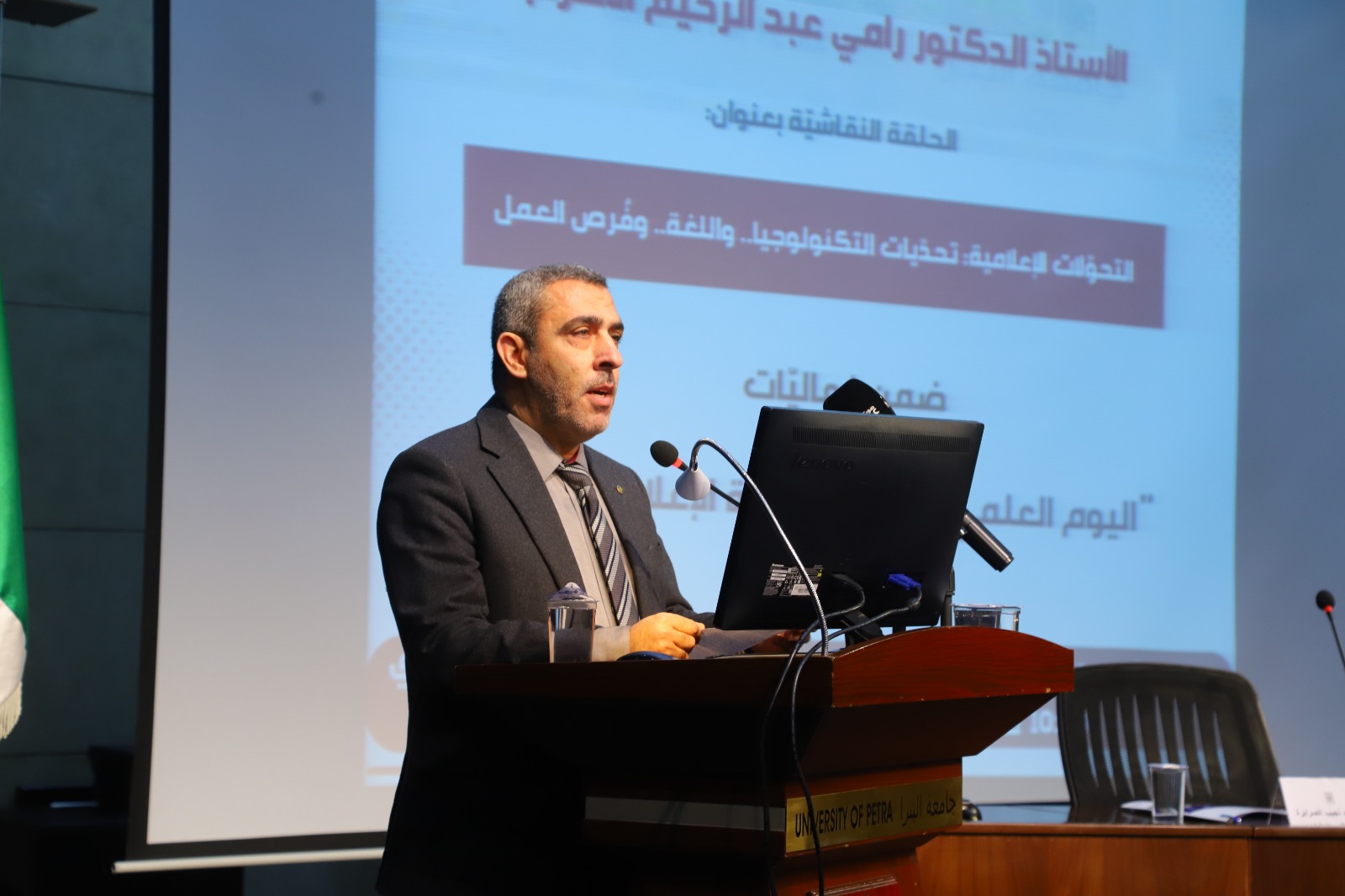 المستقل – افتتح نائب رئيس جامعة البترا الأستاذ الدكتور مياس الريماوي فعاليات اليوم العلمي لكلية الإعلام، تحت عنوان: “التحولات الإعلامية: تحديات التكنولوجيا، واللغة، وفرص العمل”. ناقش اليوم العلمي أبرز القضايا الحديثة في مجال الإعلام الرقمي، بمشاركة نخبة من الأكاديميين، والخريجين، وطلبة الكلية.