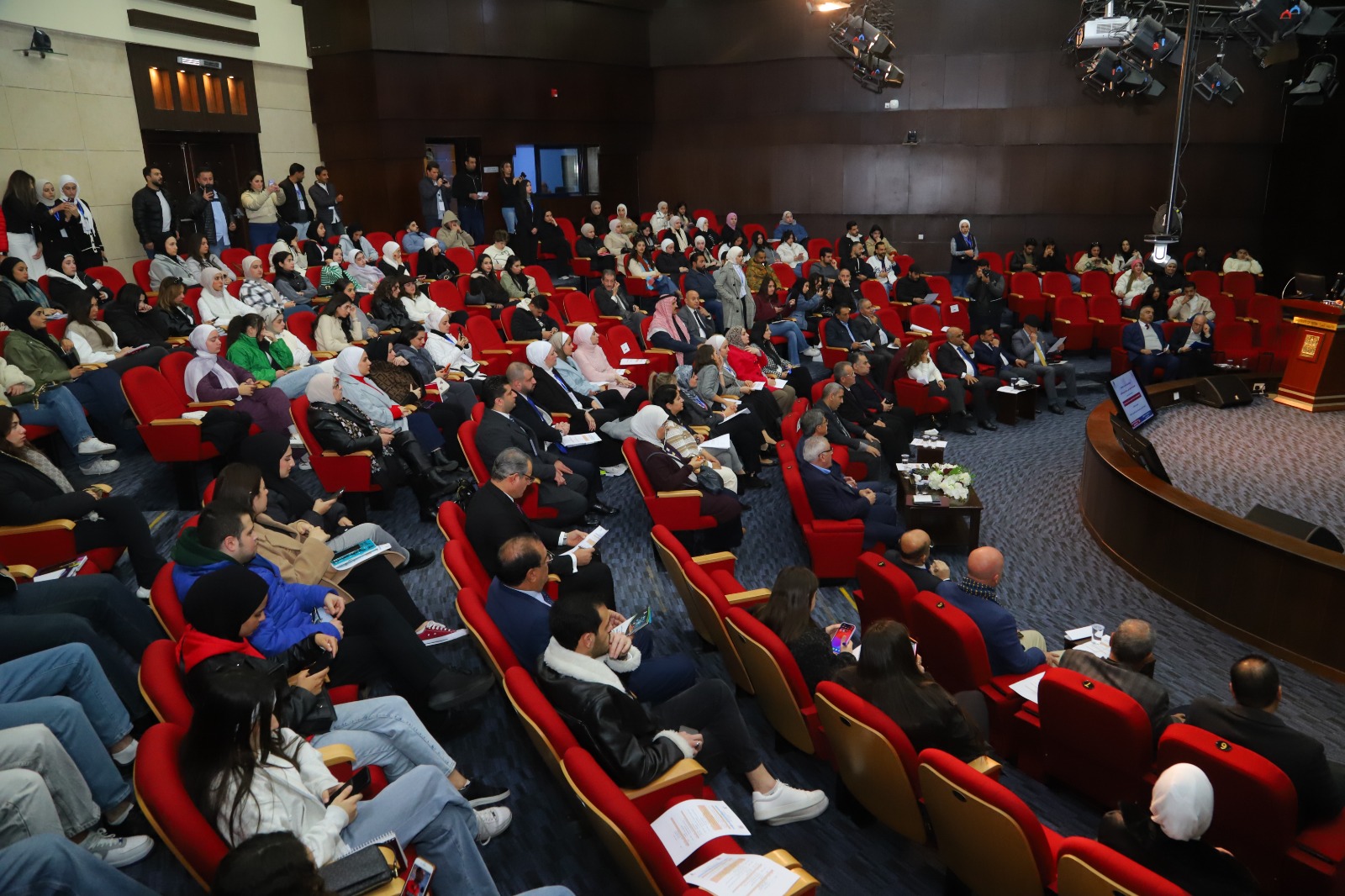 وقال عميد كلية الإعلام الأستاذ الدكتور علي نجادات: إن اليوم العلمي يعد من أبرز الفعاليات السنوية التي تعكس إبداع الطلبة وأعضاء هيئة التدريس، مشيرًا إلى تكريم الفائزين في مسابقة الإبداع لطلبة الكلية ضمن أقسامها الثلاثة: الصحافة والإعلام الرقمي، والإذاعة والتلفزيون، والإعلام الترويجي الرقمي.