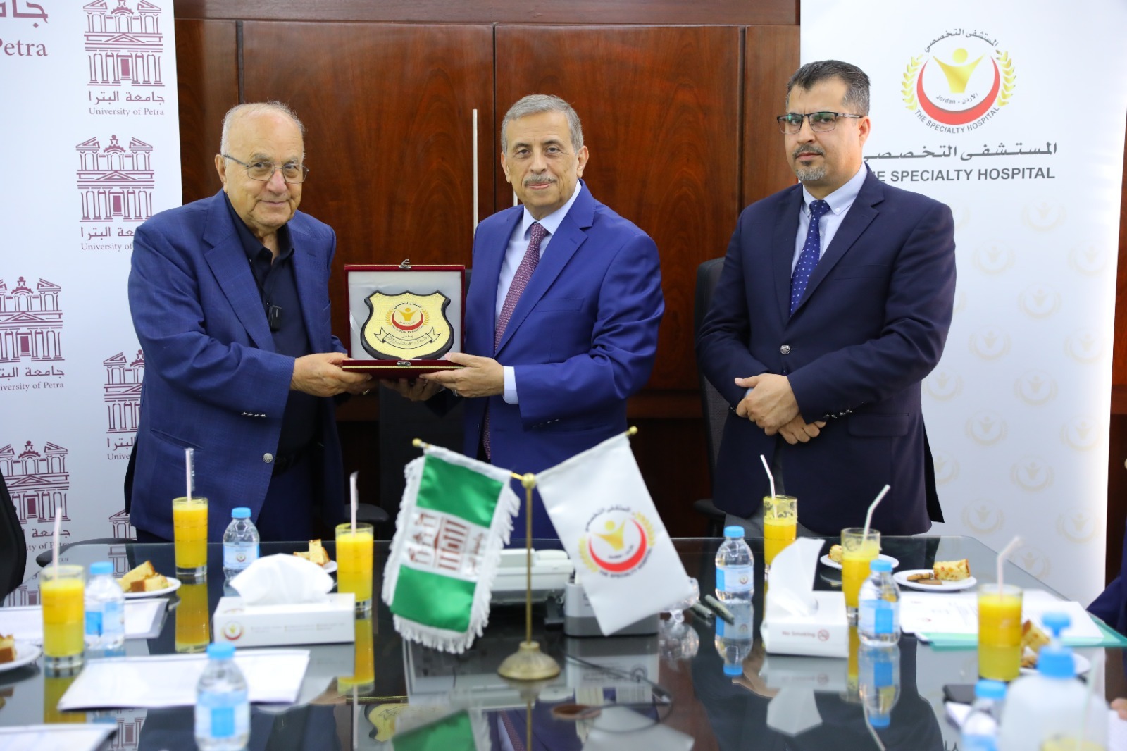 وتم أيضًا الاتفاق المبدئي على إمكانية تعاون المستشفى التخصصي مع جامعة البترا من خلال توفير أطباء متخصصين في مجال الجراحة العامة، والطب الباطني، والتخدير، ممن يملكون المؤهلات المطلوبة، كي يعملوا محاضرين غير متفرغين في كلية طب الأسنان في جامعة البترا، من أجل تدريس وتدريب طلبة كلية طب الأسنان، فضلًا عن تمكين أعضاء الهيئة التدريسية في كلية طب الأسنان التابعة لجامعة البترا من إجراء عمليات جراحية في المستشفى التخصصي.