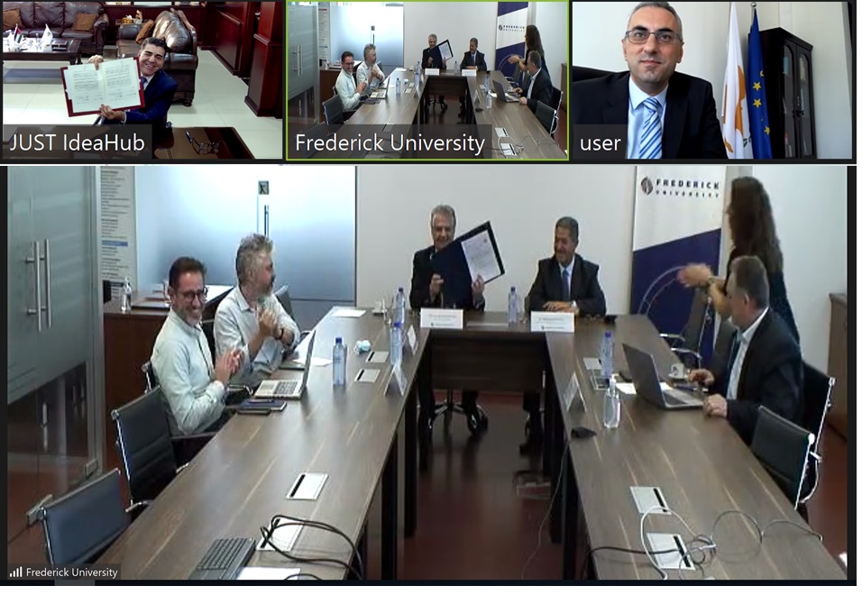 المستقل – وقعت جامعة العلوم والتكنولوجبا الأردنية مذكرة تفاهم عبر تقنية الاتصال المرئي مع جامعة فريدريك القبرصية، وقعها عن الجامعة رئيسها الأستاذ الدكتور خالد السالم ، وعن جامعة فريدريك رئيسها الأستاذ الدكتور جورج ديموسثينوس بحضور السفير الأردني في قبرص، والسفير القبرصي لدى الأردن.