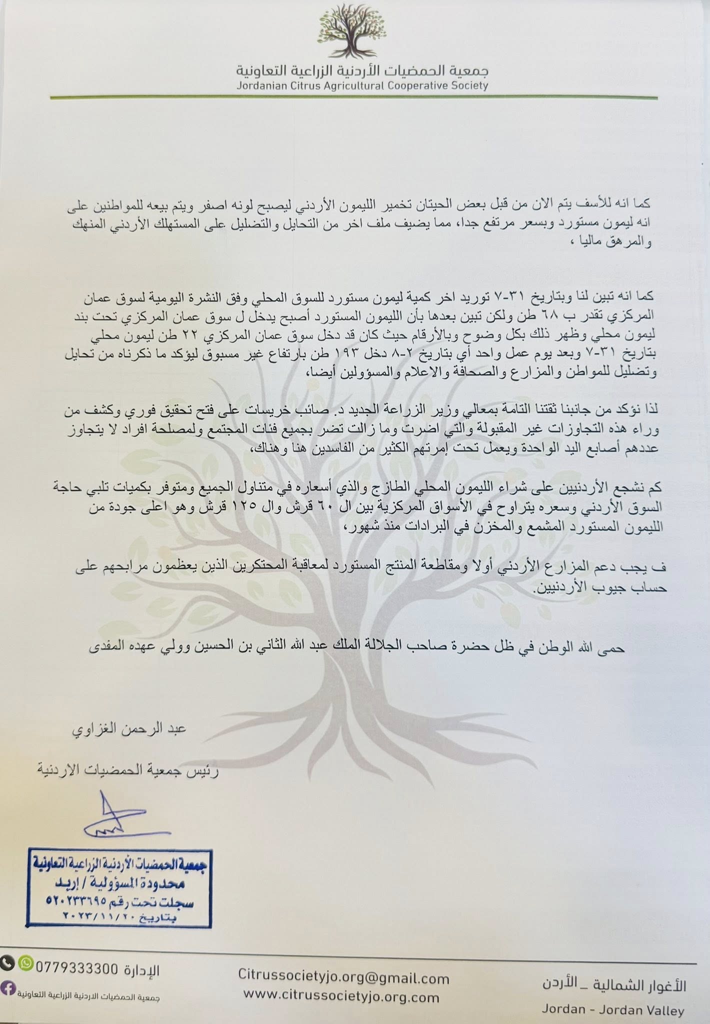 رئيس جمعية الحمضيات الاردنية