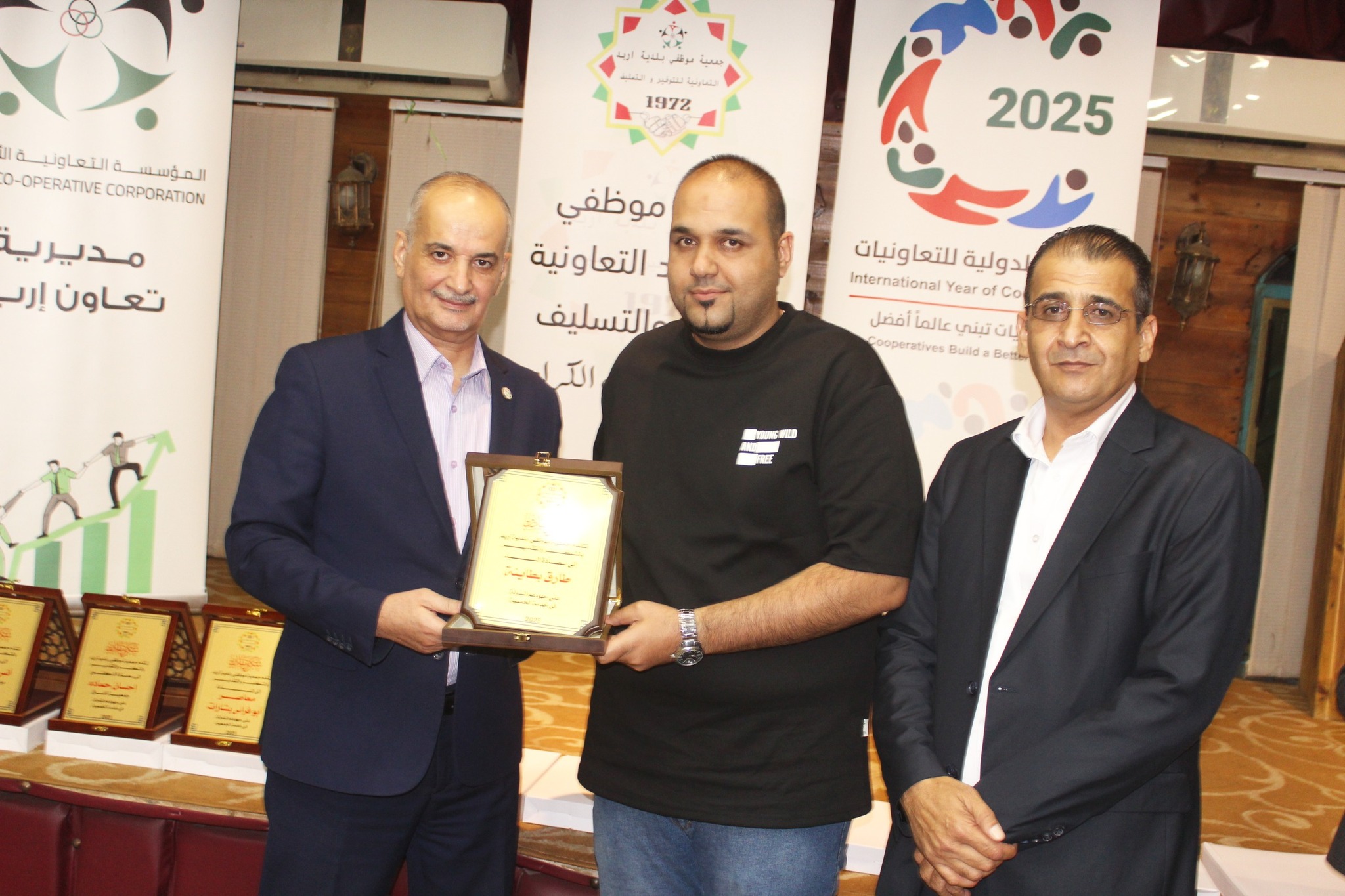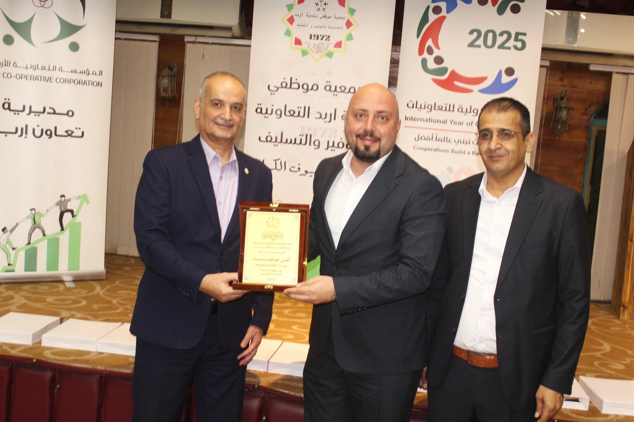 المستقل – أقامت جمعية موظفي بلدية إربد ولواء بني عبيد للتوفير والتسليف، حفل تكريم في مطعم الرّسام، لنخبة من رجال الأعمال وأصحاب السعادة النوّاب السابقين والمؤسسات والداعمين والمساهمين والتجّار، في إنجاح أعمال الجمعية وتسهيل مهامها في تقديم الخدمات لموظفي وأعضاء بلدية إربد. احتفاءً باختيار منظمة الأمم المتحده عام 2025 م، عام التعاونيات الدولي.