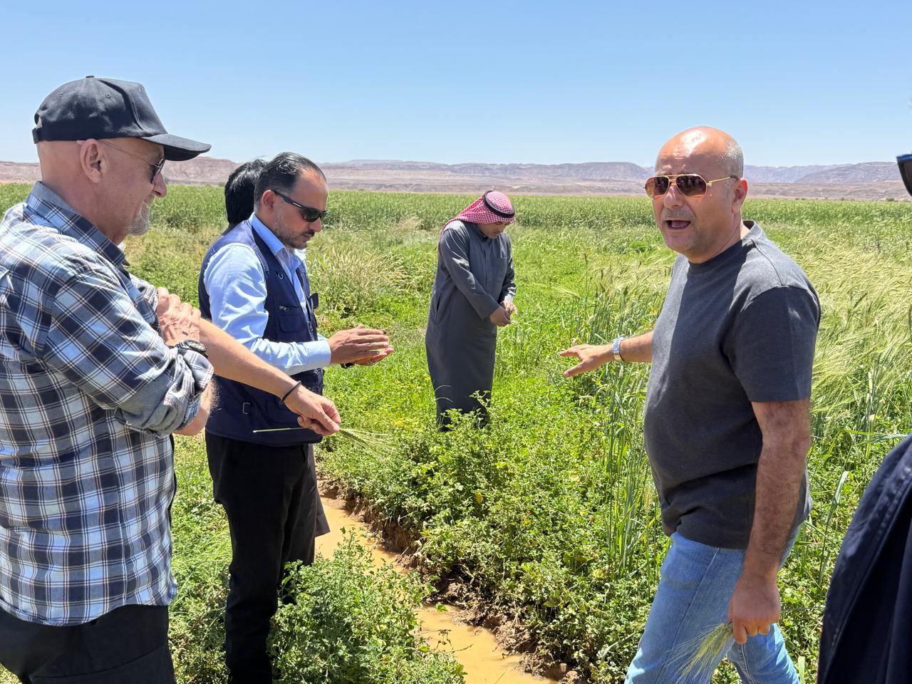 وأشاد أبوالسعود خلال الجولة بالجهود المبذولة بالشراكة مع القطاع الزراعي الخاص الأردني في سبيل تطوير الزراعة المستدامة الموفرة للمياه، حيث شهد عن كثب نتائج هذه الزراعات المختلفة خاصة زراعة القمح المطورة التي تعد من الزراعات المتقدمة، فقد تم استخدام المواد العضوية المخمرة التي تحسن من نوعية التربة بشكل كبير وواضح مع بذور القمح تم حصادها عدة مرات دون حراثة الأرض او نثر بذور أخرى وكذلك الغزارة في الإنتاج وأن كل حبة تنتج عدة سنابل غزيرة الإنتاج إضافة الى استهلاكها بما لايتجاوز 30 بالمئة فقط من كمية مياه الري المستخدمة في المحاصيل العادية وكذلك في زراعة الخضروات والفواكة المختلفة والنتائج المبهرة المتحققة.