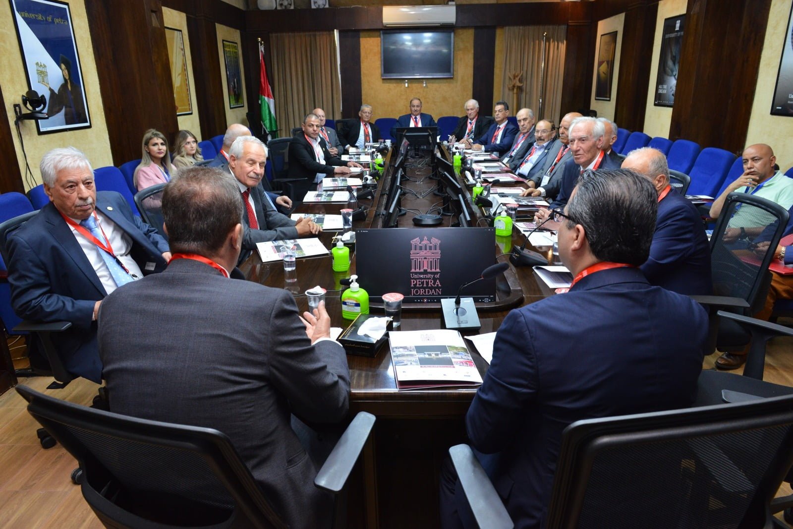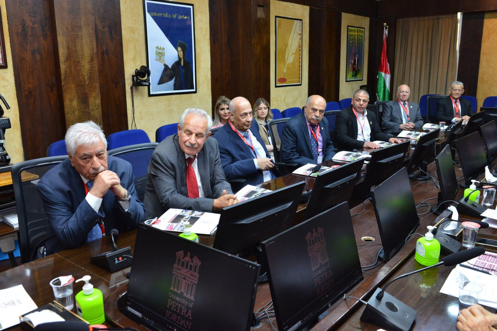 واستقبل رئيس جامعة البترا الأستاذ الدكتور رامي عبد الرحيم والمستشار الأعلى للجامعة ومجلس أمنائها الأستاذ الدكتور عدنان بدران الوفد في حرم جامعة البترا.