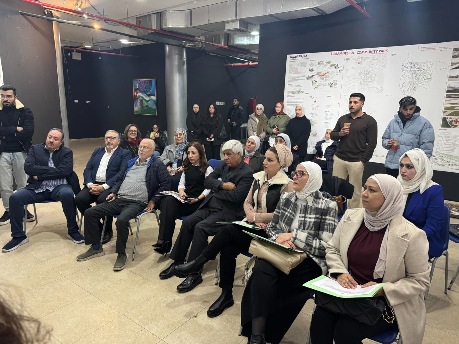 أشرف على العمل الدكتورة هدير مرزه، والدكتورة سلام مرعي، والمهندسة بتول القرارعة. حضر المناقشة الأمين العام لوزارة الإدارة المحلية للشؤون الفنية المهندس وجدي الضلاعين، وممثلون عن الوزارة وشركة مناجم الفوسفات الأردنية، وبلدية الرصيفة، إضافة إلى متخصصين في التصميم العمراني.
