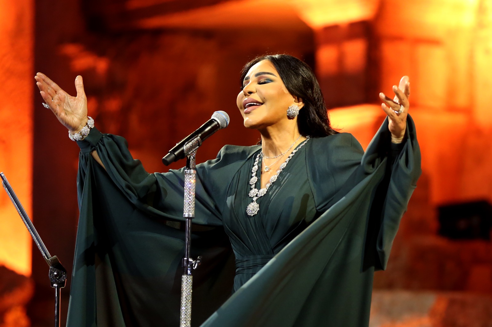 فقدمت أغنية لما قلبي يحب. لتتمايل العباءات السود في المدرجات مرددة مع نسمات الليل لحظات العشق.