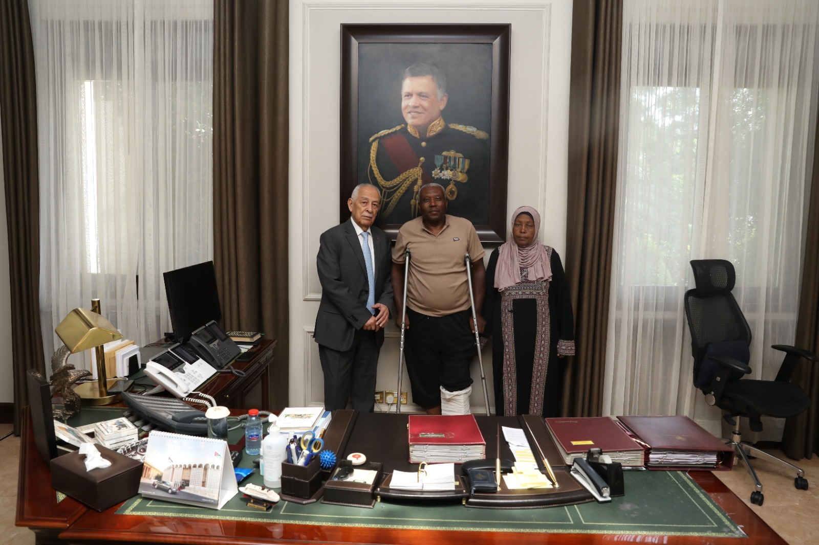 وتم الاتصال بالخدمات الطبية الملكية، وإبلاغهم بتأمين العلاج اللازم له على نفقة الديوان الملكي الهاشمي، حيث نقل مباشرة إلى مدينة الحسين الطبية لتلقي الرعاية الطبية اللازمة.