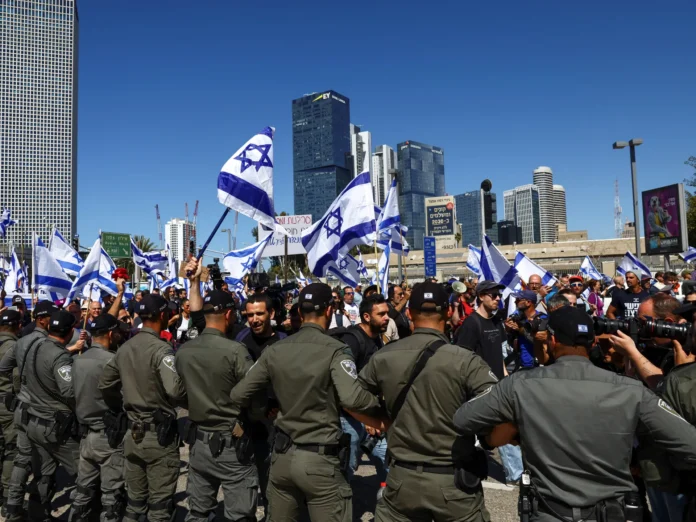 المستقل – تظاهر مئات الإسرائيليين في مطار بن غوريون، بالقرب من تل أبيب، وذلك عشية مغادرة رئيس الوزراء الإسرائيلي بنيامين نتنياهو إلى واشنطن.