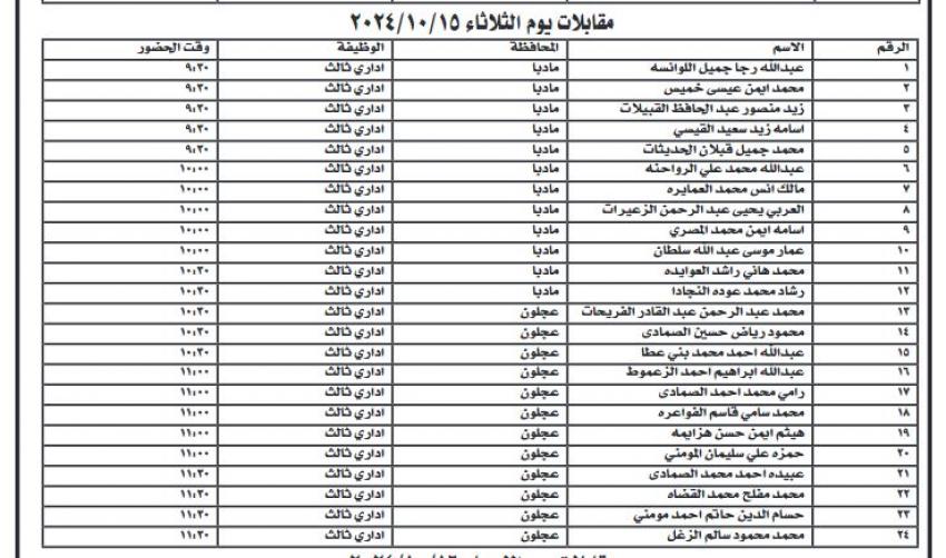 الرئيسيةمحلياتمدعوون لاجراء المقابلات الشخصية في دائرة قاضي القضاة - اسماء