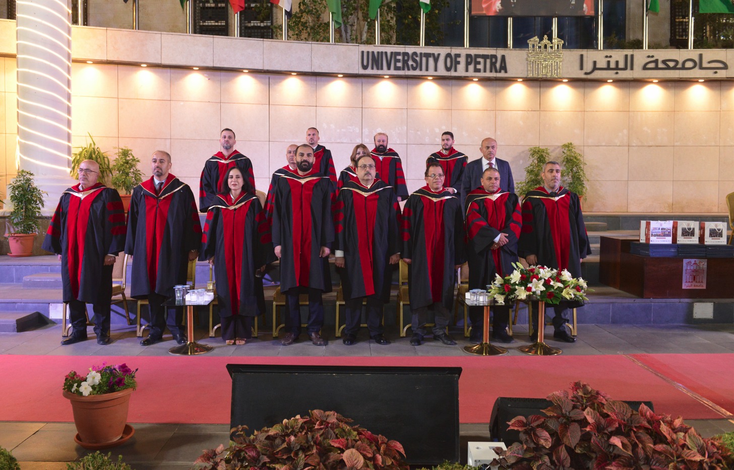 المستقل – رعى الأستاذ الدكتور مياس الريماوي، نائب رئيس جامعة البترا للشؤون الأكاديمية، مندوبًا عن رئيس الجامعة، حفل تخريج الفوج الثاني عشر من طلبة الدبلومات التدريبية، والذي شمل تخصصات: التصميم الداخلي والديكور، الأمن السيبراني، التصميم والتحريك الجرافيكي، إدارة المستشفيات، وإدارة الأعمال، بمشاركة (80) طالبًا وطالبة.
