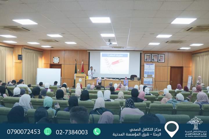 مركز التكافل الصحي تشرف بعقد هذه الورشة التدريبية وبلقاء الحضور الكريم في جامعة اليرموك العريقة , ويتقدم بالشكر الجزيل وعظيم الامتنان  لعميد شؤون الطلبة وعميد كلية العلوم ونائبه والقائمين على مبادرة ” تأميني بيحميني ” ولفريق مركز التكافل الصحي التطوعي ولكل من ساهم بإنجاح هذه الفعالية , ونسأل الله  لهم وللجامعة دوام الرفعة والتقدم , وللجميع وافر الصحة والعافية .