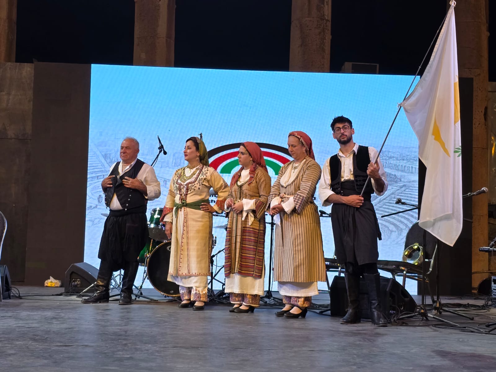 واستكملت الليلة جماليّتها بعرض من فرقةLimassol Folklore Group التي وجهت تحية قبرصية للاردن بانغام والالحان قبرصية أصيلة وبلغة عربية لتعبير عن فرحتهم بتواجدهم في جرش.