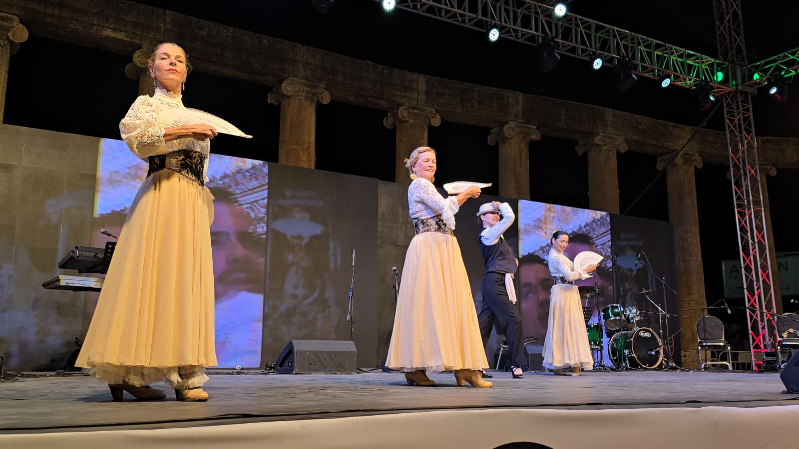 اداء فني مميز جمع التاريخ والفن بصورة جمالية مميزة ساحرة للفرقة الاسبانية Coros y Danzas de أستكملت الأمسية بالانغام الشرقية والفلكور الإسباني والأصالة التي نقلت الجمهور الى شوارع إسبانيا.