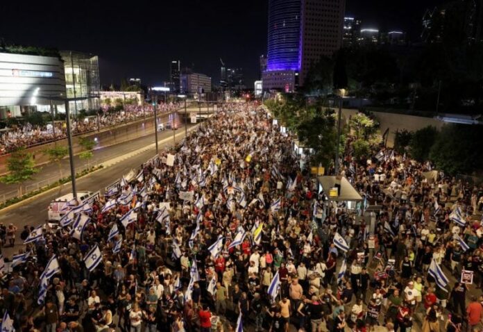 المستقل – خرج متظاهرون إلى شوارع عدة مدن في أنحاء إسرائيل، مساء السبت، مطالبين بالتوصل إلى صفقة رهائن لضمان إطلاق سراح جميع الأسرى المحتجزين في غزة بشكل آمن، ودعوا إلى إجراء انتخابات مبكرة في البلاد.
