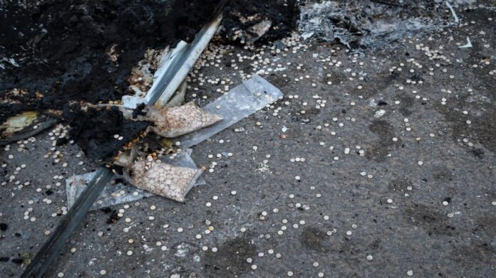 وأخرجت كومة من المخدرات يبدو أنها أقراص كبتاغون من مبنى تابع للقوات الجوية وأتلفت حرقا. وكانت النيران لا تزال مشتعلة عند وصول فريق وكالة فرانس برس إلى المكان.