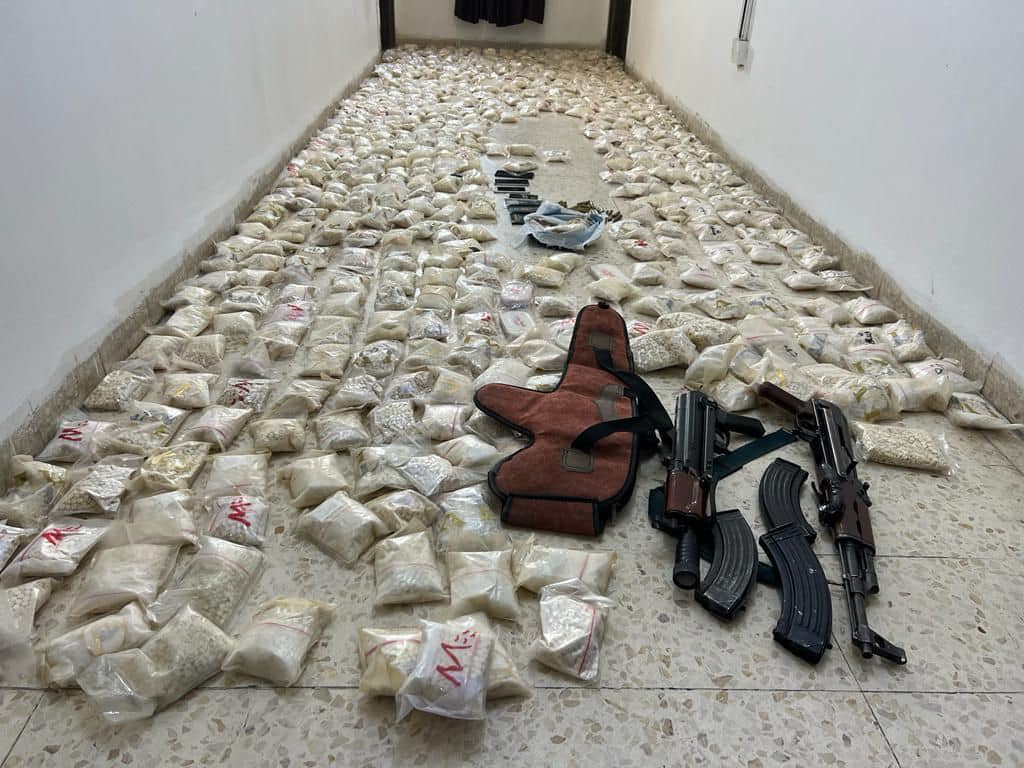 وبيَّن انهم داهموا صباح اليوم أحد تجار المخدرات في البادية الجنوبية في عملية نوعية جديدة،إذ أُلقي القبض عليه وبحوزته كميات كبيرة من الحبوب المخدرة وسلاحان أوتوماتيكيان.