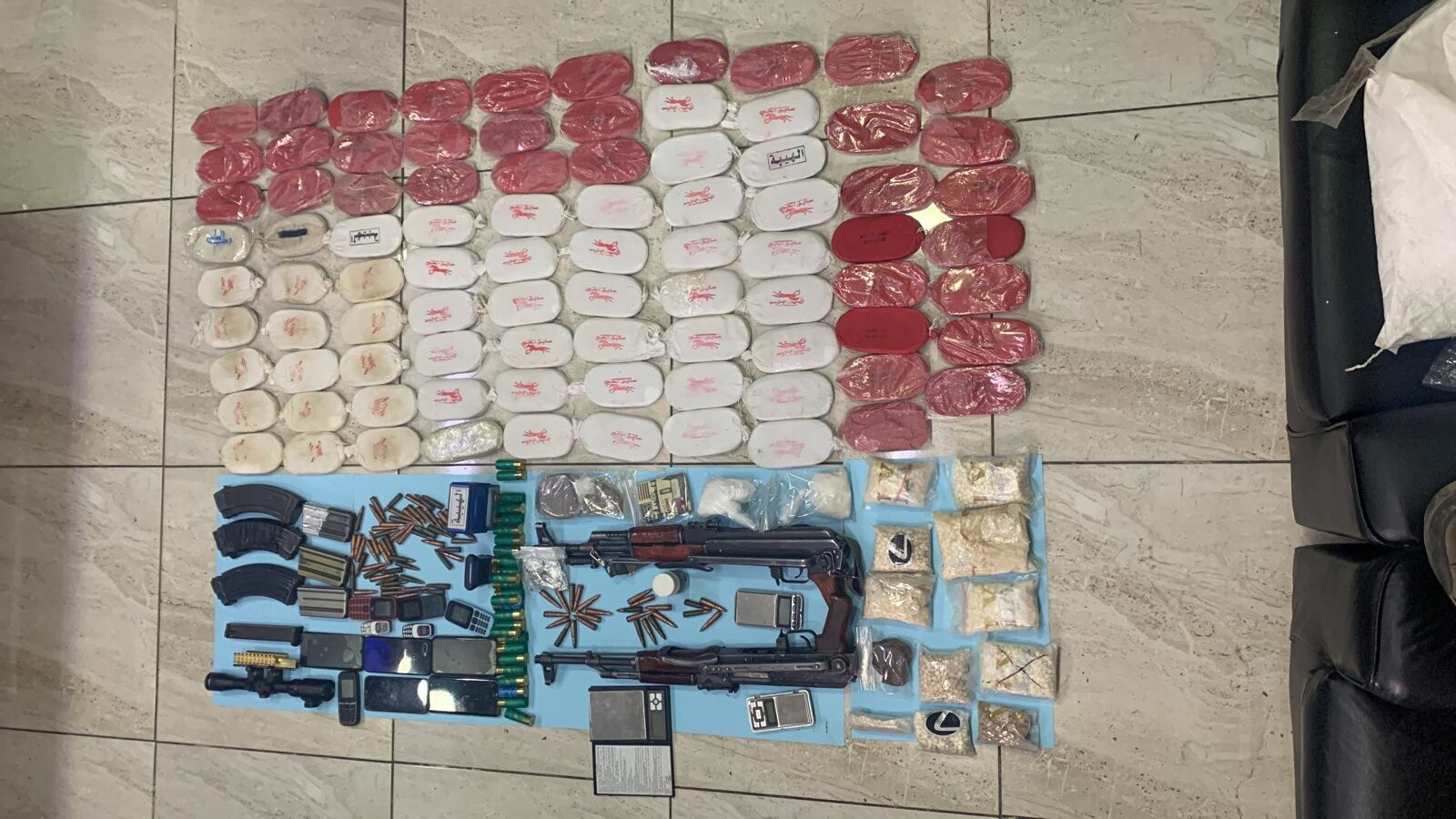 ** ضُبط بحوزتهما 10 آلاف حبة مخدرة و 87 كف حشيش وسلاحان ناريان أوتوماتيكيان