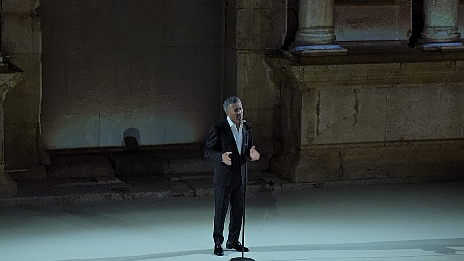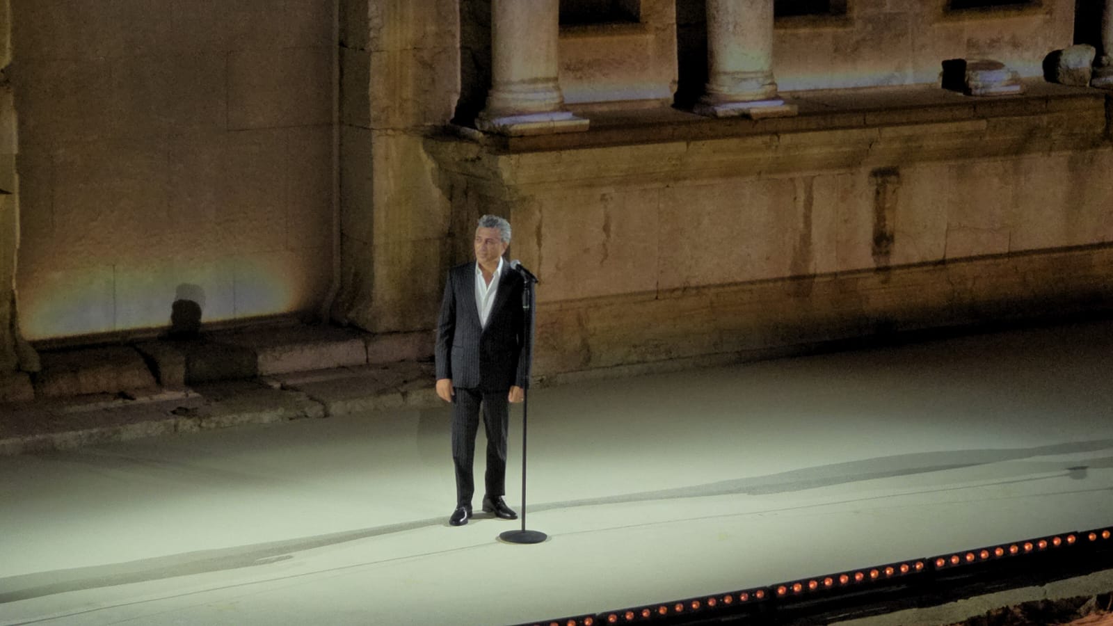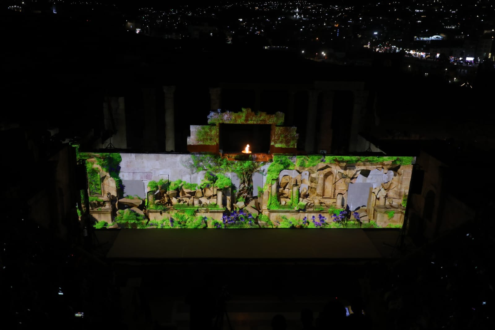 واستخدم الحجر الأثري للمسرح الروماني كشاشة عرض بصرية، تعرض عليها مشاهد رقمية رباعية الأبعاد تشمل صورا تاريخية، وأعلاما، ولوحات رمزية، ومشاهد شعرية متحركة.