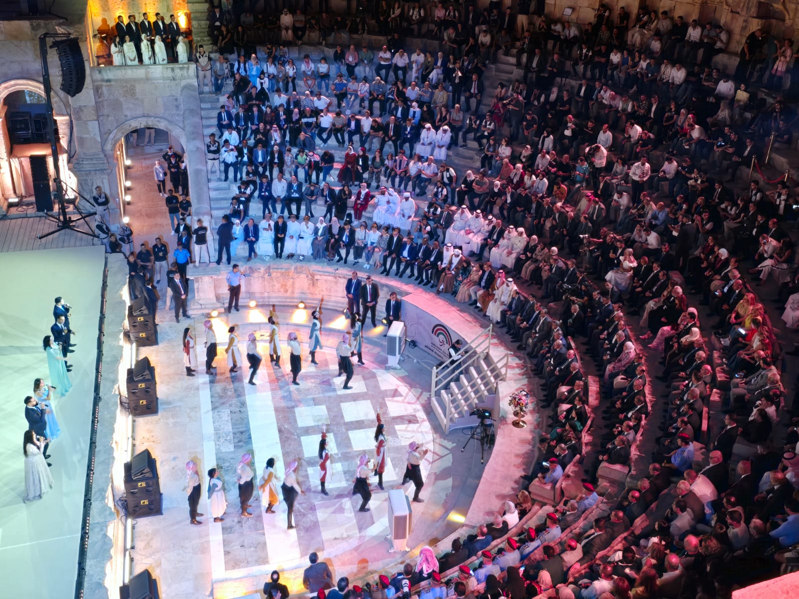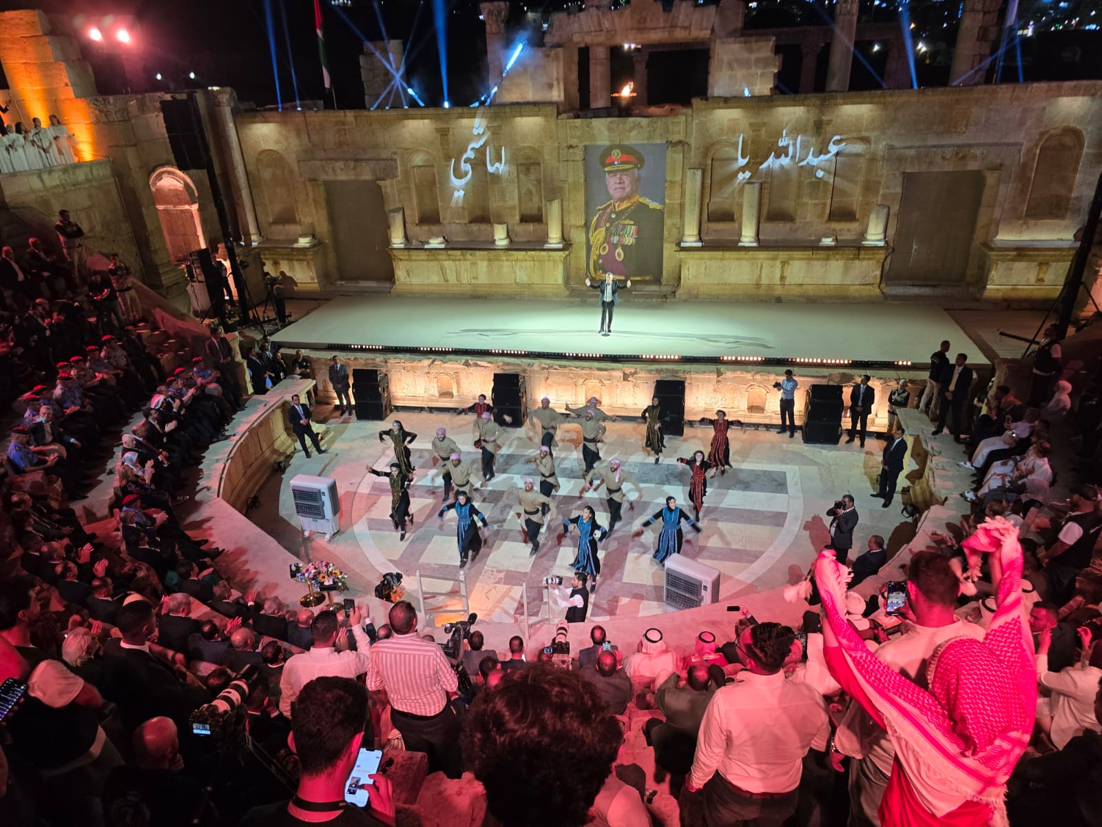 وتصمنت فعاليات الافتتاح أوبريت “على ذرى المجد” الذي يحتفي بتاريخ الأردن وقيادته وشعبه، وبالعلاقة الروحية بين اللغة والقصيدة والوطن، في إطار درامي غنائي بصري، عبر وصلات غنائية وطنية فصيحة كتبها الشاعر حيدر محمود.