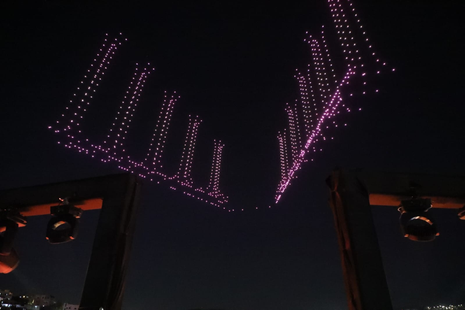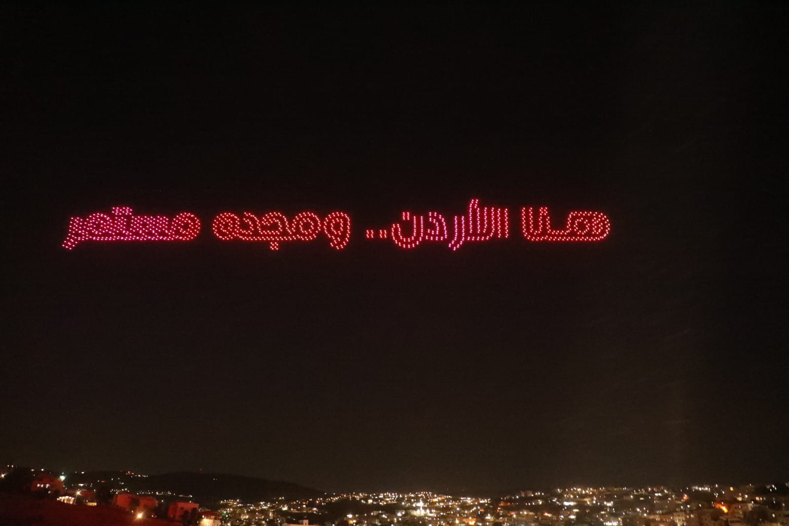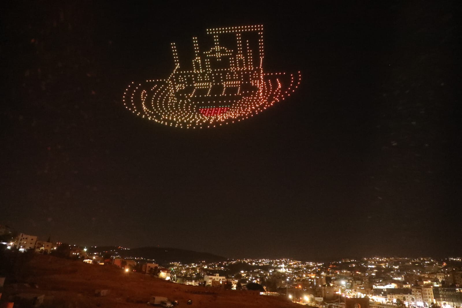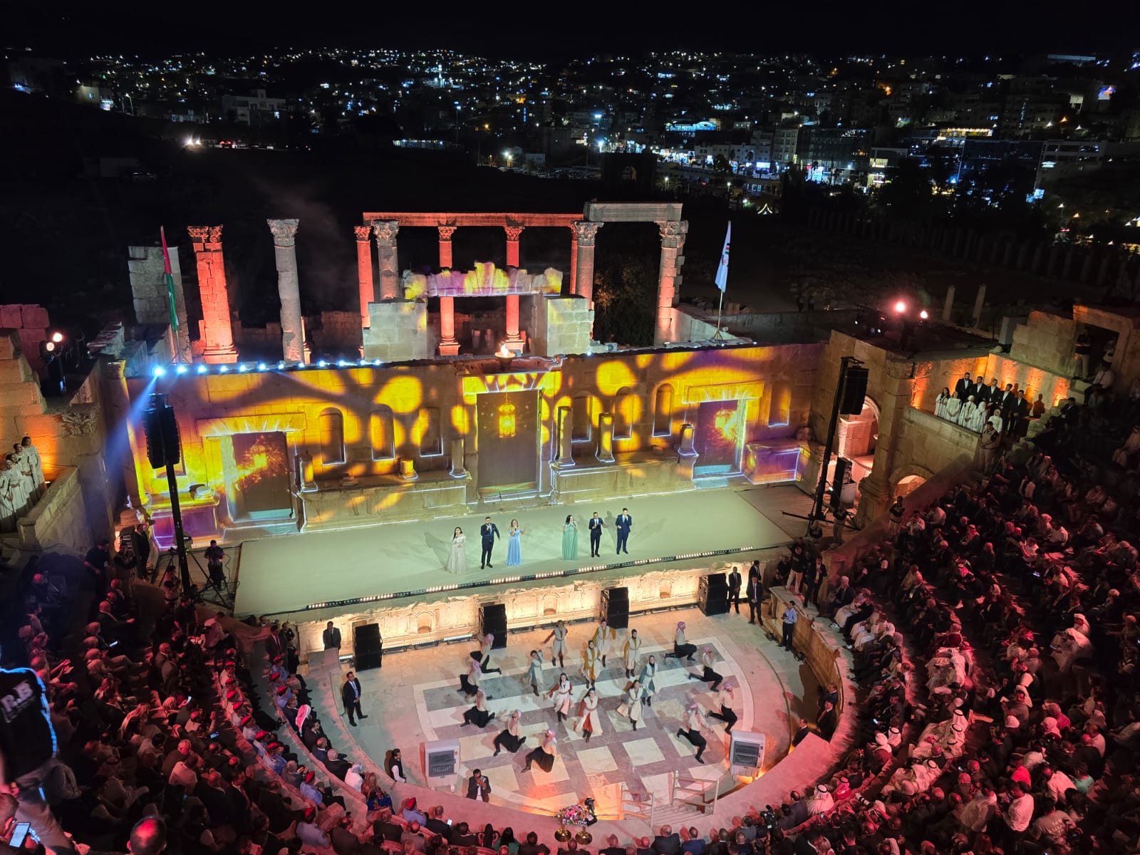 وتزيّنت سماء جرش بعروض دورن تضمنت صورا لجلالة الملك وولي العهد، وشعلة المهرجان وشعاره، وصورا للمدينة الأثرية، وعلم الأردن.
