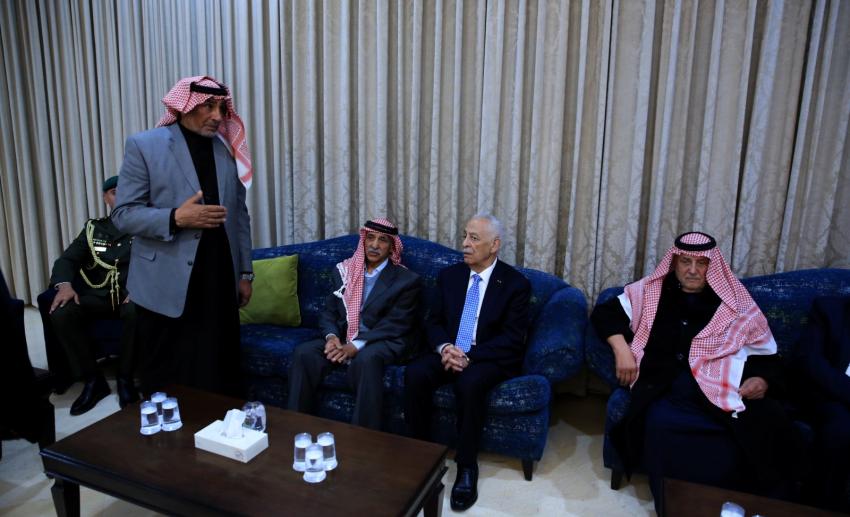 المستقل – مندوبا عن جلالة الملك عبدالله الثاني، وسمو الأمير الحسين بن عبدالله الثاني، ولي العهد، قدم رئيس الديوان الملكي الهاشمي يوسف حسن العيسوي، اليوم الثلاثاء، واجب العزاء إلى عشائر الزواهرة والقيسي والخيطان والحويان.