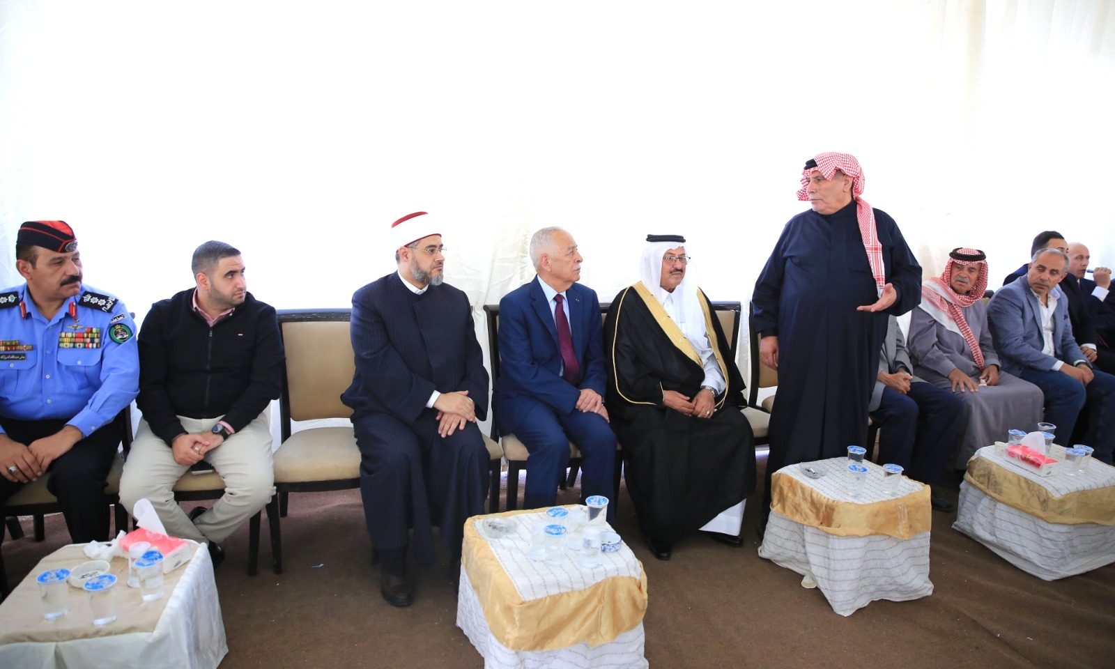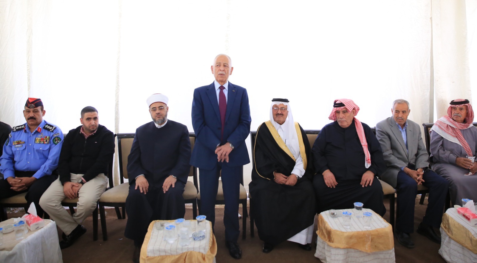 المستقل – مندوبا عن جلالة الملك عبدالله الثاني، وسمو الأمير الحسين بن عبدالله الثاني، ولي العهد، قدم رئيس الديوان الملكي الهاشمي يوسف حسن العيسوي، اليوم الثلاثاء، واجب العزاء إلى عشائر الشهوان/العجارمة والعمري وآل هلال.