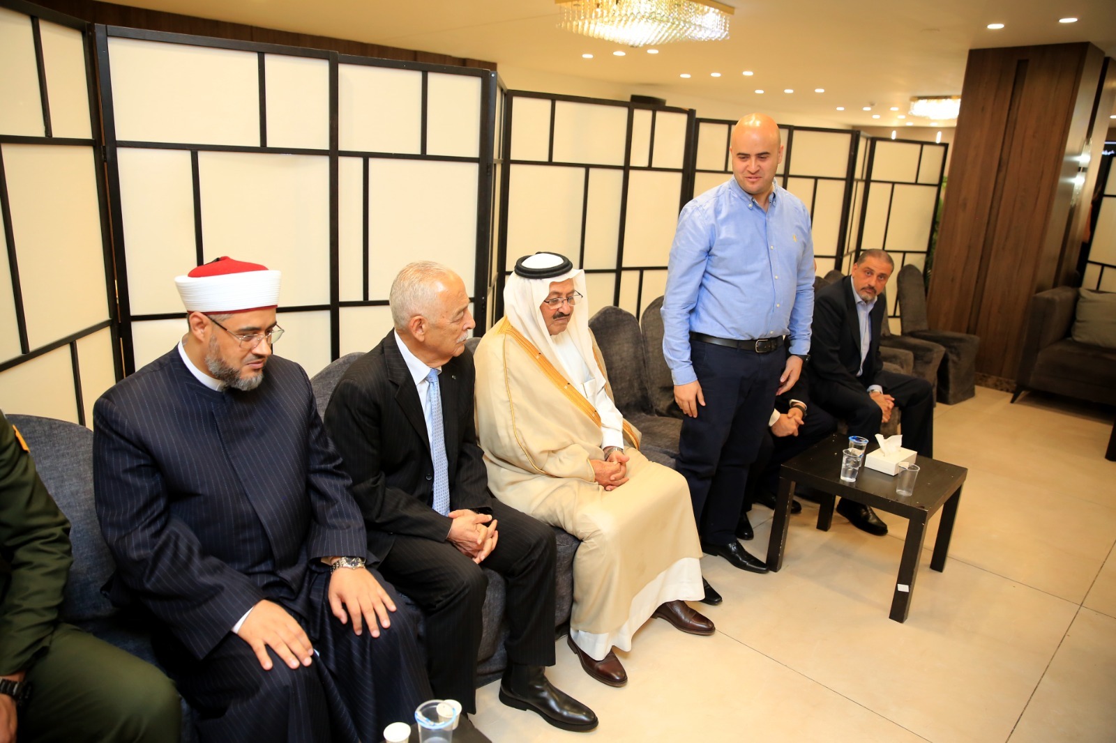 المستقل – مندوبًا عن جلالة الملك عبدالله الثاني، وسمو الأمير الحسين بن عبدالله الثاني، ولي العهد، قدّم رئيس الديوان الملكي الهاشمي، يوسف حسن العيسوي، اليوم الاثنين، واجب العزاء إلى آل وجوخ وعشيرة الجميعان وعشيرة النابلسي وآل الكيالي.