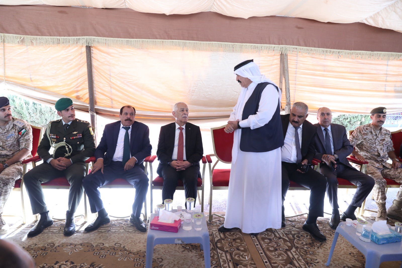 المستقل – مندوبا عن جلالة الملك عبدالله الثاني، وسمو الأمير الحسين بن عبدالله الثاني، ولي العهد، قدم رئيس الديوان الملكي الهاشمي يوسف حسن العيسوي، اليوم الاثنين، واجب العزاء إلى عشيرتي أبو الفول والعدوان.