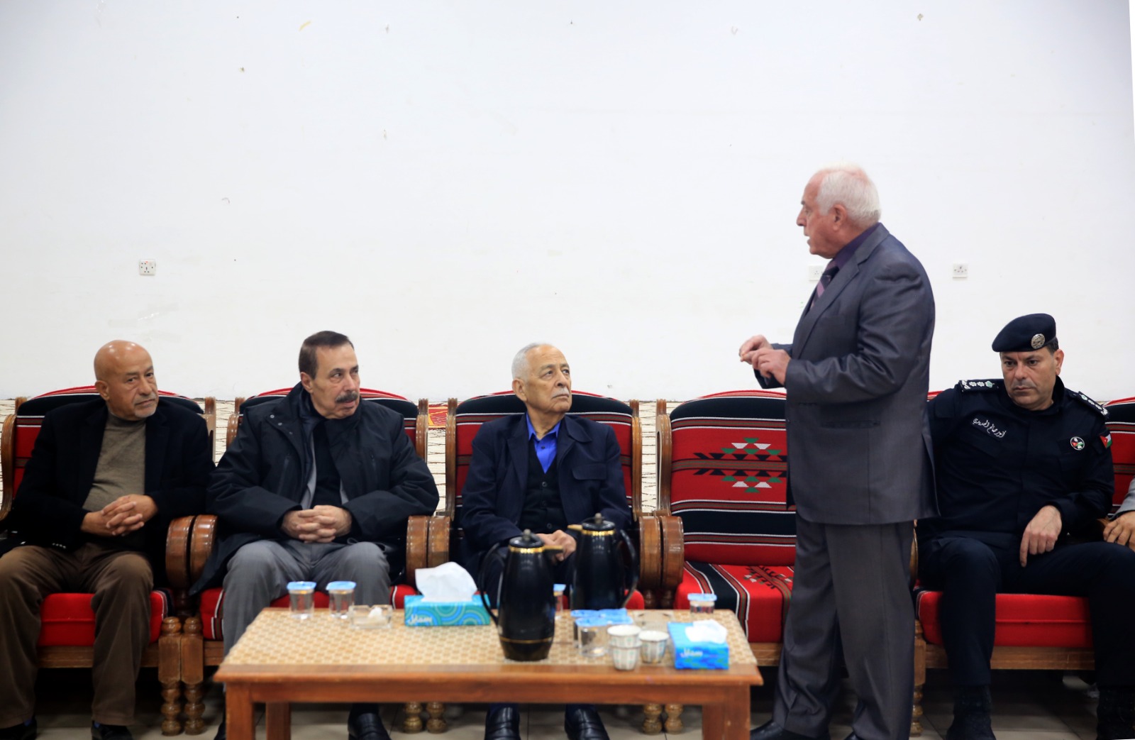 المستقل – مندوبا عن جلالة الملك عبدالله الثاني، وسمو الأمير الحسين بن عبدالله الثاني، ولي العهد، قدم رئيس الديوان الملكي الهاشمي يوسف حسن العيسوي، اليوم السبت، واجب العزاء إلى عشيرتي الملكاوي والعبيدين.